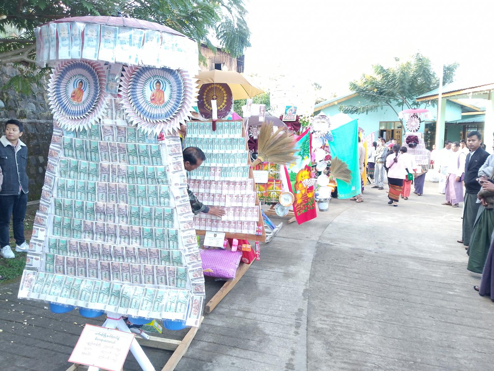 စုပေါင်းမဟာဘုံကထိန်ပွဲတော်ကို ဌာနဆိုင်ရာများ၊ တပ်ရင်းတပ်ဖွဲ့များ၊ မြို့ခံပြည်သူများနှင့် ကျောင်းသားကျောင်းသူများက ခရိုင်အထွေထွေ အုပ်ချုပ်ရေးဦးစီးဌာနရုံးမှစတင်၍ ပညာဒီပကျောင်းတိုက်အထိ ပဒေသပင်များဖြင့် စည်ကားစွာ လှည့်လှည်ခဲ့ကြသည်။