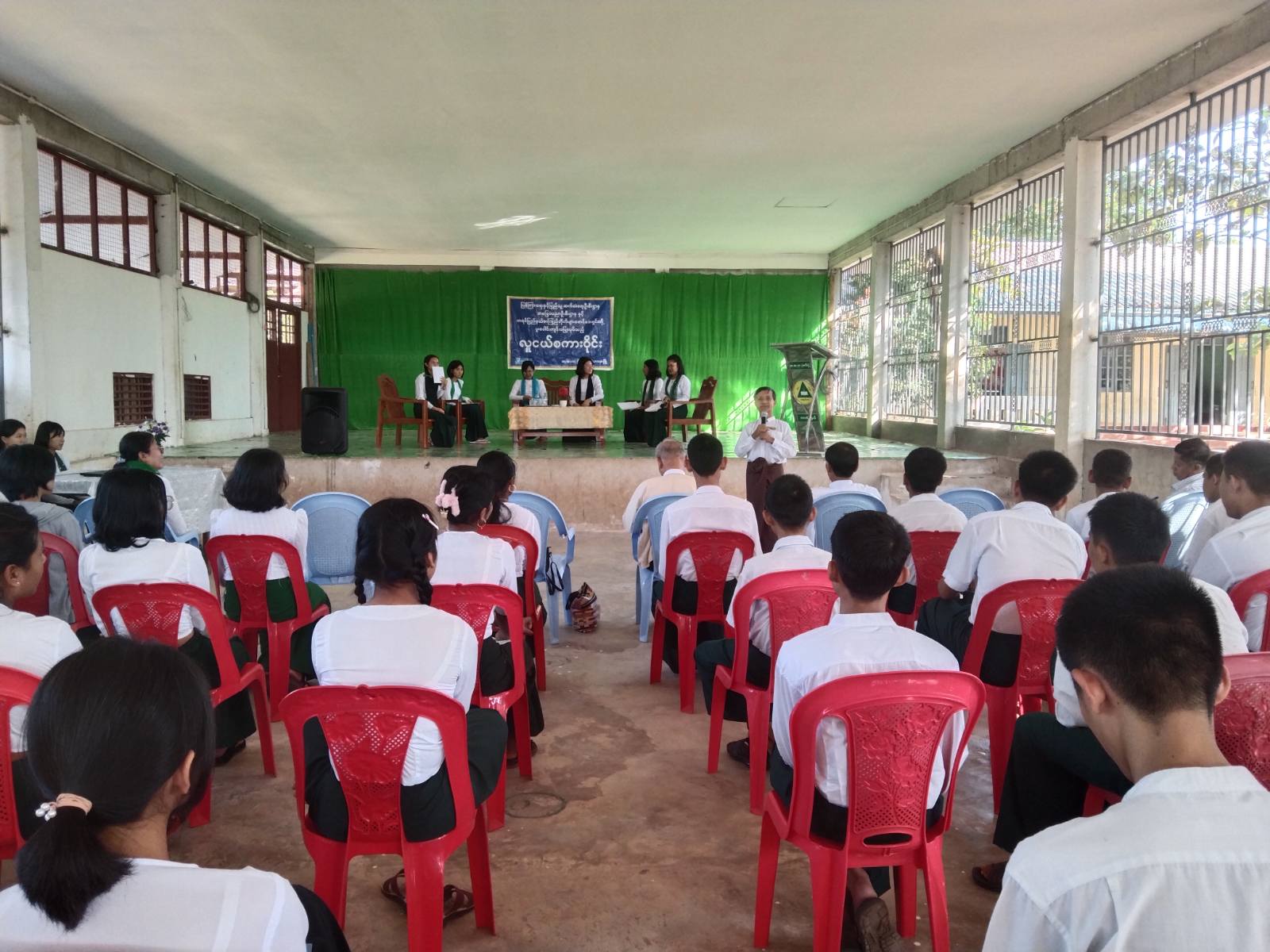 ရှေးဦးစွာ ဘားအံခရိုင် ပြန်ကြားရေးနှင့်ပြည်သူ့ဆက်ဆံရေးဦးစီးဌာန၊ လက်ထောက်ညွှန်ကြားရေးမှူး ဒေါ်စိုးစိုးအေးက နိုင်ငံတော်၏ ဦးတည်ချက်(၉) ရပ်အနက် လူမှုရေးကဏ္ဍတွင် နိုင်ငံတော်၏ ဖွံ့ဖြိုးတိုးတက်ရေးလုပ်ငန်းစဉ်များ၌ လူငယ်များအနေဖြင့် အဓိကစွမ်းအားစုအဖြစ် ပါဝင်နိုင်ရေး ဗလငါးတန်နှင့်ပြည့်စုံသော လူငယ်များဖြစ်စေရန် လူငယ်ကဏ္ဍကို မြှင့်တင်ဆောင်ရွက်ရေး အချက်ပါဝင်သည့် အတွက် လူငယ်များ ဦးဆောင်ဆွေးနွေးသည့် လူငယ်စကားဝိုင်းကို ကျင်းပပြုလုပ်ရခြင်းဖြစ်ကြောင်း ရှင်းလင်းပြောကြားပြီးနောက် လူငယ်စကားဝိုင်း ဆွေးနွေးပွဲကို ကျင်းပရာ အစီအစဉ်တင်ဆက်သူအဖြစ် ဘားအံခရိုင်လက်ထောက်ညွှန်ကြားရေးမှူး ဒေါ်စိုးစိုးအေးက ဆောင်ရွက်ပြီး အထက်တန်းကျောင်း(လှာကာ)မှ Grade-11 မှ မရှိန်းမေသူခိုင်က လူငယ်နှင့်အားကစားခေါင်းစဉ်ဖြင့် လည်းကောင်း၊ Grade-11 ကျောင်းသူ မအွန်ထူးဆောင်းက လူငယ်နှင့်စာပေ ခေါင်းစဉ်ဖြင့် လည်းကောင်း၊ Grade-10 ကျောင်းသူ မကြယ်စင်မိုးမခက လူငယ်နှင့်ကိုယ်ကျင့်တရားခေါင်းစဉ် ဖြင့်လည်းကောင်း၊ Grade-11 ကျောင်းသူ မသံစဉ်ငြိမ်းက လူငယ်နှင့်ပေါင်းသင်းဆက်ဆံရေး ခေါင်းစဉ်များဖြင့်လည်းကောင်း Grade-11 ကျောင်းသူ မယဉ်စန္ဒီတင့်က လူငယ်နှင့်အသက်မွေးဝမ်းကြောင်း ခေါင်းစဉ်များဖြင့်လည်းကောင်း ဆွေးနွေးခဲ့ ကြကြောင်း သိရသည်။