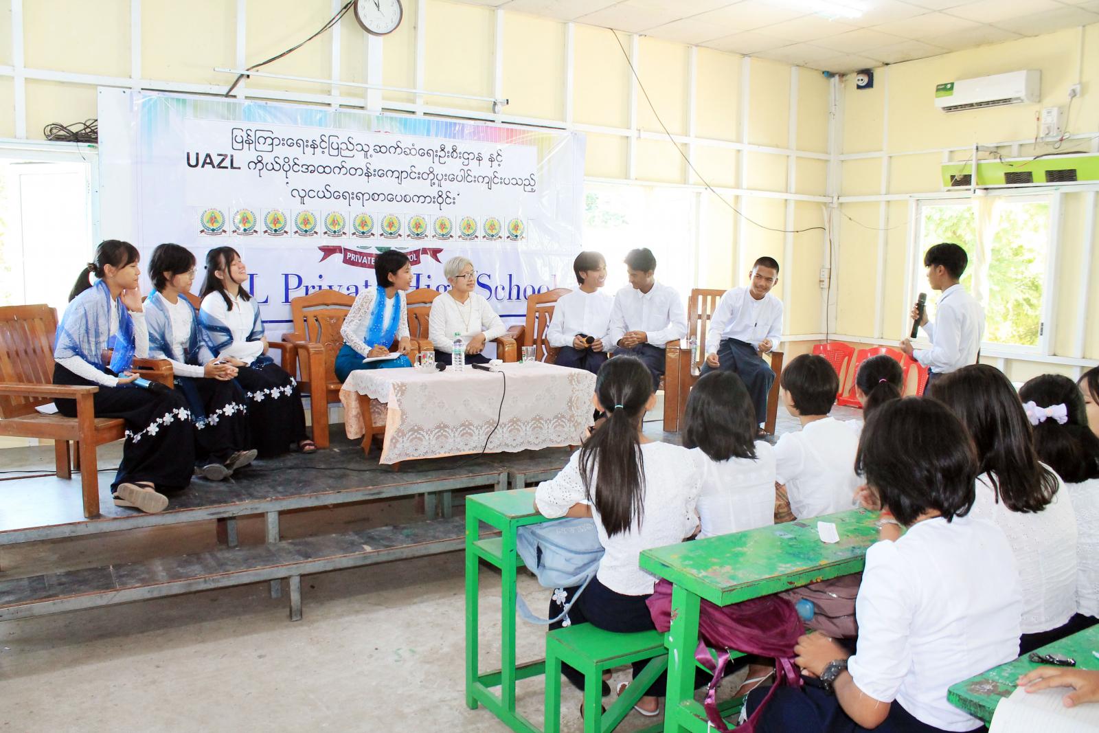 ရှေးဦးစွာ မြို့နယ်စီမံအုပ်ချုပ်ရေးအဖွဲ့ဥက္ကဋ္ဌ ဦးကျော်ဇင်ဦးက အဖွင့်အမှာစကားပြောကြားခဲ့ပြီး လူငယ်စကားဝိုင်းကိုကျင်းပရာ မြို့နယ်ပြန်ကြားရေးနှင့်ပြည်သူ့ဆက်ဆံရေးဦးစီးဌာနမှ မြို့နယ်ဦးစီးမှူး ဒေါ်အေးမိုးမိုးမြင့်နှင့် UAZL ကိုယ်ပိုင်အထက်တန်းကျောင်းမှ ဆရာမ ဒေါ်အေးနုတို့က ဦးဆောင်ဆွေးနွေးသူအဖြစ် ဆောင်ရွက်ခဲ့ပြီး UAZL ကိုယ်ပိုင်အထက်တန်းကျောင်း Grade-10 မှ မမိုင်မြတ်နိုးအောင်က လူငယ်နှင့်ပညာရေး ခေါင်းစဉ်ဖြင့်လည်းကောင်း၊ Grade-10 မှ မောင်အွန်မင်းဆက်က လူငယ်နှင့် ရည်မှန်းချက် ခေါင်းစဉ်ဖြင့်လည်းကောင်း၊ Grade-9 မှ မတည်ကြည်ထူးစံက လူငယ်နှင့်စာပေခေါင်းစဉ်ဖြင့် လည်းကောင်း၊ Grade-9 မှ မောင်ချစ်နိုင်က လူငယ်နှင့်အားကစားခေါင်းစဉ်ဖြင့်လည်းကောင်း၊ Grade-9 မှ မောင်ဖြိုးကြယ်စင်သော်က လူငယ်နှင့်မူးယစ်ဆေးခေါင်းစဉ်ဖြင့်လည်းကောင်း၊ Grade-10 မှ မပြုံးမွန်ကိုက လူငယ်နှင့်ယဉ်ကျေးမှုခေါင်းစဉ်ဖြင့်လည်းကောင်း အသီးသီးဆွေးနွေးခဲ့ကြပြီး လူငယ်စကားဝိုင်းသို့ တက်ရောက်လာကြသည့် ကျောင်းသား၊ ကျောင်းသူများက သိရှိလိုသည်များအား မေးမြန်းဆွေးနွေးရာ တာဝန်ရှိသူများက ပြန်လည် ရှင်းလင်းဖြေကြားခဲ့သည်။