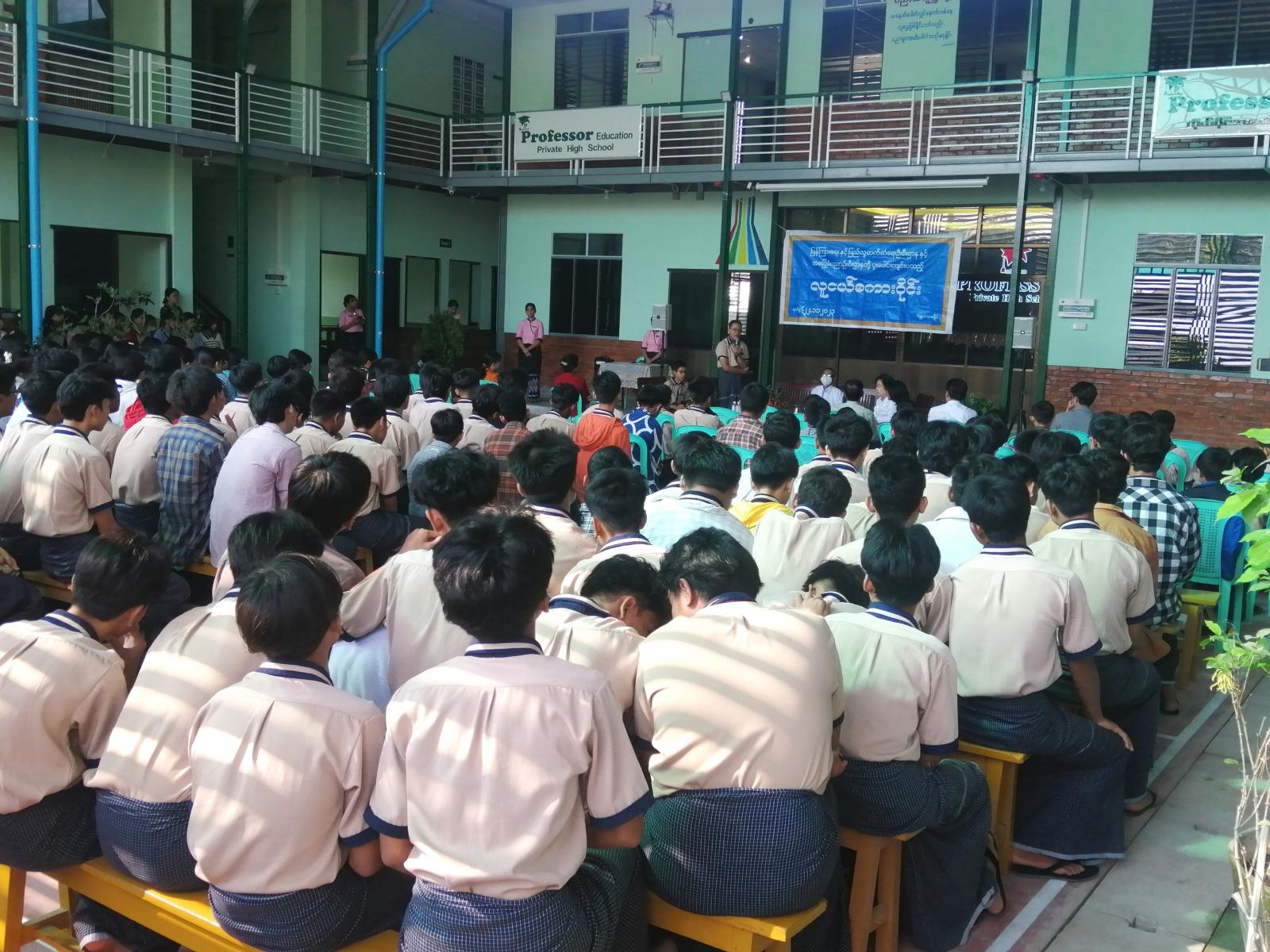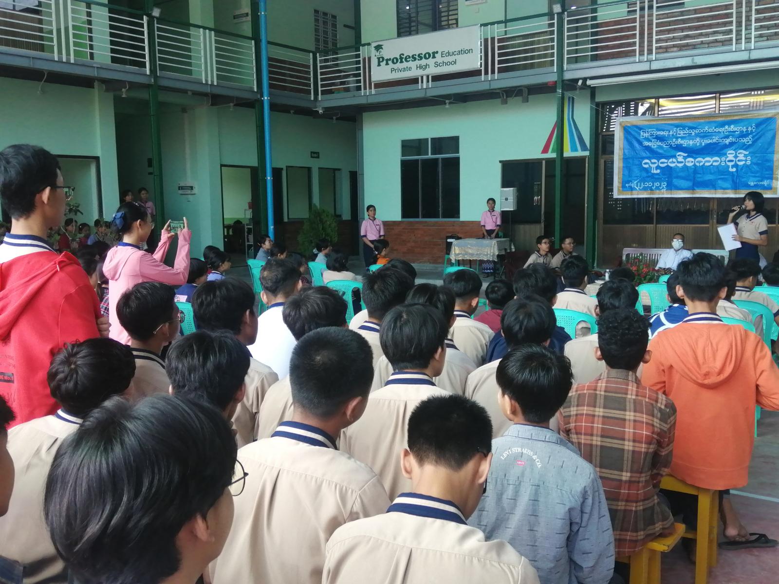 ကျောင်းသား၊ ကျောင်းသူလူငယ်များ အသိပညာဗဟုသုတကြွယ်ဝပြီး ဘက်စုံဖွံ့ဖြိုးတိုးတက်စေရန်၊ ဗလငါးတန်နှင့် ပြည့်စုံသောလူငယ်များဖြစ်လာစေရန်၊ လူ့စွမ်းအားအရင်းအမြစ် ဖွံ့ဖြိုးတိုးတက်စေရန်နှင့် ဆွေးနွေးပွဲများတွင် ပါဝင်ဆွေးနွေးတက်စေရန် ရည်ရွယ်၍ မန္တလေးတိုင်းဒေသကြီး၊ မဟာအောင်မြေခရိုင် ပြန်ကြားရေးနှင့်ပြည်သူ့ဆက်ဆံရေးဦးစီးဌာနနှင့် Professor ကိုယ်ပိုင်ကျောင်းတို့ ပူးပေါင်း၍ လူငယ်စကားဝိုင်းဆွေးနွေးပွဲကို ယနေ့နံနက်(၉)နာရီခွဲအချိန်က Professor ကိုယ်ပိုင်အထက်တန်းကျောင်း၌ ကျင်းပခဲ့သည်။