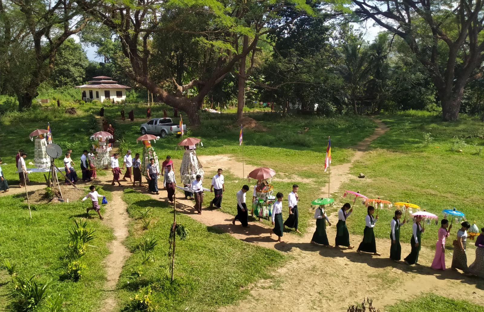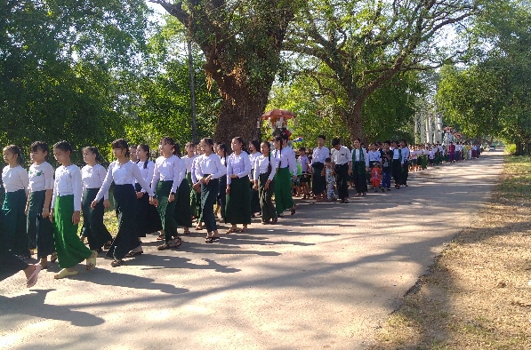 အဆိုပါ စုပေါင်းမဟာဘုံကထိန်ပွဲကို ဌာနဆိုင်ရာများ၊ မြို့သူ/သားများနှင့် စေတနာရှင် အလှူရှင်တို့မှ စုပေါင်း၍ ကထိန်သင်္ကန်းများနှင့် ပဒေသာပင်များကို မြို့တွင်းသို့ လှည့်လည်ပူဇော်ခဲ့ပြီး ပိုင်ကျုံမြို့မ သာသနာပြုကျောင်းတိုက်တွင် ကထိန်သင်္ကန်းများ ဆက်ကပ် လှူဒါန်းခဲ့ကြသည်။