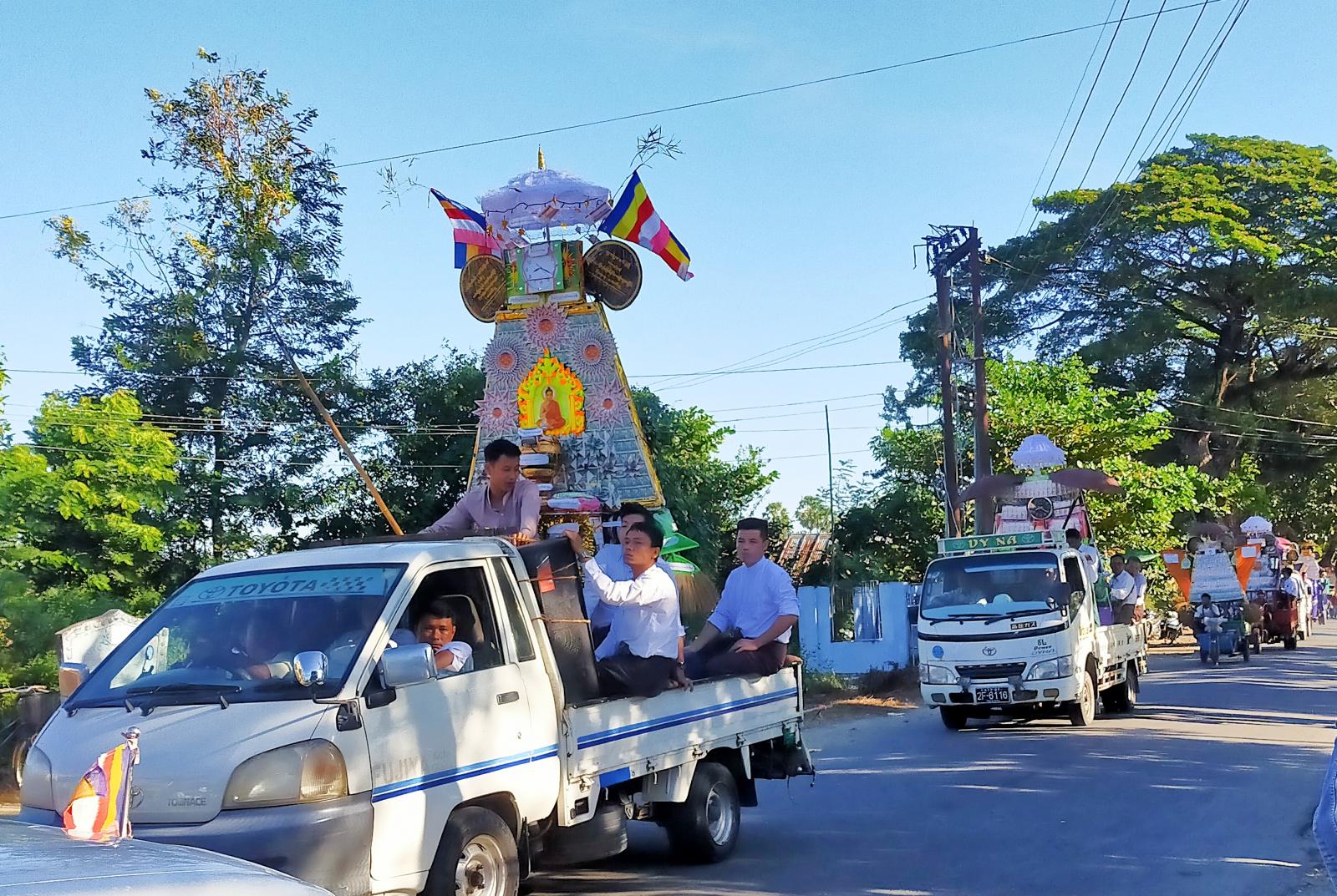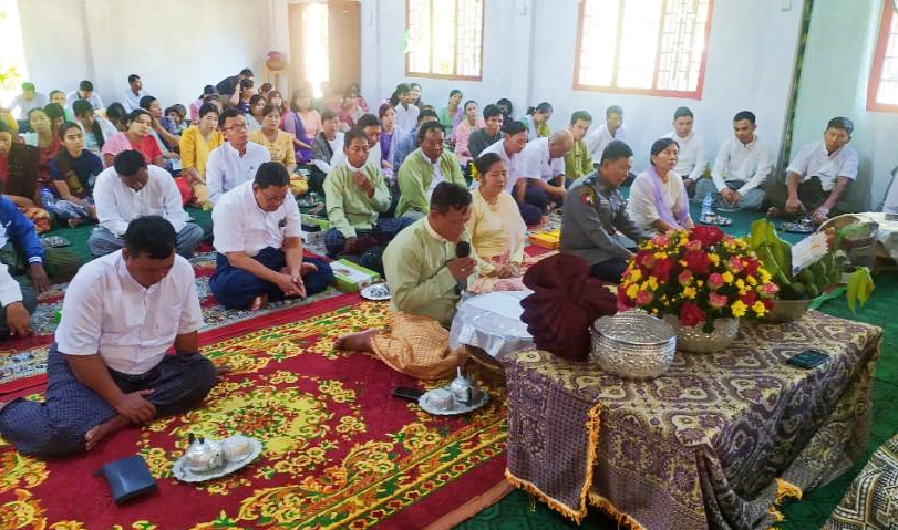 အဆိုပါ ကျောင်းတိုက်သို့ မြို့နယ်အထွေထွေအုပ်ချုပ်ရေးဦးစီးဌာန မြို့နယ်အုပ်ချုပ်ရေးမှူး ဦးသိန်းတန်နှင့် ဝန်ထမ်းများ၊ မြို့နယ်အဆင့် ဌာနဆိုင်ရာ အကြီးအကဲများ၊ အလှူရှင်များက ပဒေသာပင် (၂၈)ပင်အား ကျွဲအကများ၊ အိုးစည်ဗုံမောင်းများဖြင့် ပို့ဆောင်လှူဒါန်းကြသည်။ ယင်းနောက် အခမ်းအနားကျင်းပရာ ကြွရောက်လာကြသော မြို့နယ်အထွေထွေအုပ်ချုပ်ရေး ဦးစီးဌာန မြို့နယ်အုပ်ချုပ်ရေးမှူးဦးသိန်းတန်နှင့် မြို့နယ်အဆင့် ဌာနဆိုင်ရာ အကြီးအကဲများနှင့် ဝန်ထမ်းများ၊ အလှုရှင်များက နမောတဿ (၃)ကြိမ်ရွတ်ဆိုကာ အခမ်းအနား ဖွင့်လှစ်ပြီး၊ နိုင်ငံတော် ဗဟိုသံဃာ့ဝန်ဆောင် နိုင်ငံတော်ဝိနည်းဓိုရ် ကွေ့မတောင်ပုံကျောင်းဆရာတော် သာသနာ့ဓဇ ဓမ္မာစရိယ ဘဒ္ဒန္တဝရဉာဏ ဆရာတော်ထံမှ ငါးပါးသီလတရားတော် ခံယူဆောက်တည်ပြီး၊ ကြံခင်းမြို့နယ်အတွင်းရှိ ဆရာတော် (၂၈)ပါးအား မြို့နယ် အထွေထွေအုပ်ချုပ်ရေးဦးစီးဌာန မြို့နယ်အုပ်ချုပ်ရေးမှူး ဦးသိန်းတန်နှင့် မြို့နယ်အဆင့် ဌာနဆိုင်ရာ အကြီးအကဲများမှ လှုဖွယ်ဝတ္ထု ဆက်ကပ်လှုဒါန်းခြင်းနှင့် နိုင်ငံတော် ဗဟိုသံဃာ့ဝန်ဆောင် နိုင်ငံတော်ဝိနည်းဓိုရ် ကွေ့မတောင်ပုံကျောင်းဆရာတော် သာသနာ့ဓဇ ဓမ္မာစရိယ ဘဒ္ဒန္တဝရဉာဏ ဆရာတော်အား ကထိန်လျာဉတ်သင်္ကန်းနှင့် အခြံအရံ ဝတ္ထုသင်္ကန်းများ ဆက်ကပ်လှူဒါန်းရာ၊ ငွေသားတန်ဘိုး ငွေကျပ်သိန်း (၇,၉၆၃,၂၀၀)၊ ပဒေသာပင် (၂၈)ခုတန်ဘိုးငွေကျပ် သိန်း(၄,၃၂၆,၇၀၀)၊ စုစုပေါင်း တန်ဘိုးငွေကျပ် သိန်း (၁၂,၂၈၉,၉၀၀)တန်ဘိုးအား လှုဒါန်းခဲ့ကြသည်။
