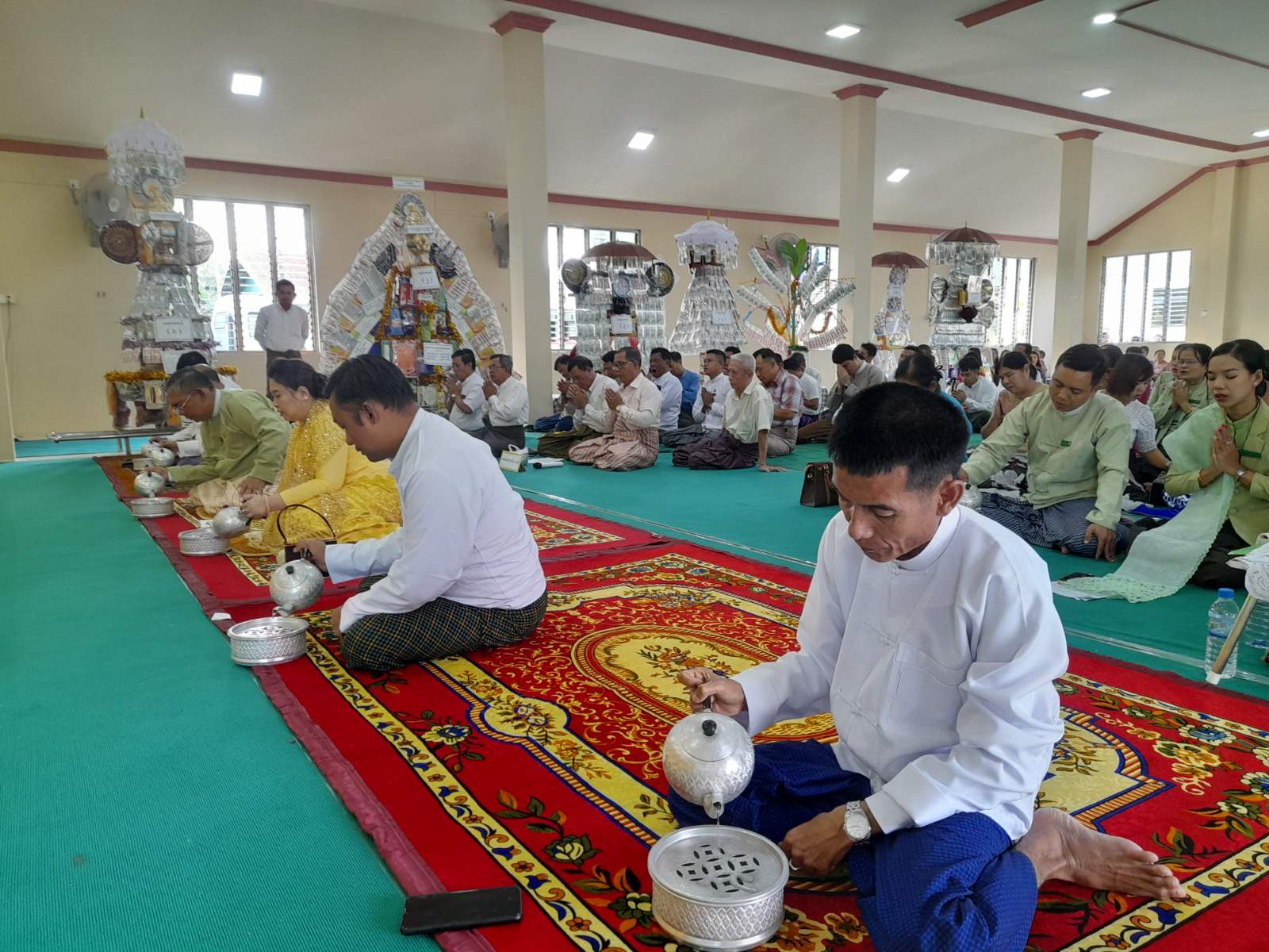 ထို့နောက် ရပ်မိရပ်ဖများက မြို့နယ်အဆင့်ဌာနဆိုင်ရာများမှ လှူဒါန်းထားသော ပဒေသာပင် (၁၂) ပင်အား မဲဖောက်ပေးပြီးသက်ဆိုင်ရာဌာနများမှ တာဝန်ရှိသူများက ဆရာတော်များထံ ဆက်ကပ်လှူဒါန်းခဲ့ပြီးနောက် မြို့နယ်သံဃာ့နာယကအဖွဲ့ဥက္ကဋ္ဌ ညောင်ဇင်ကျောင်းသစ် ကျောင်းတိုက်ဆရာတော်ကြီး ဘဒ္ဒန္ဒကောသလထံမှ တရားနာယူခြင်း၊ လှူဒါန်းမှုအစုစုအတွက် ရေစက်သွန်းချအမျှပေးဝေ၍ ဆရာတော်သံဃာတော်များနှင့် တရားနာဧည့် ပရိသတ်အပေါင်းတို့က ဗုဒ္ဓသာဿနံစိရံတိဠတု (၃) ကြိမ်ရွတ်ဆိုကာ အခမ်းအနားရုပ်သိမ်းခဲ့ကြောင်း သိရသည်။