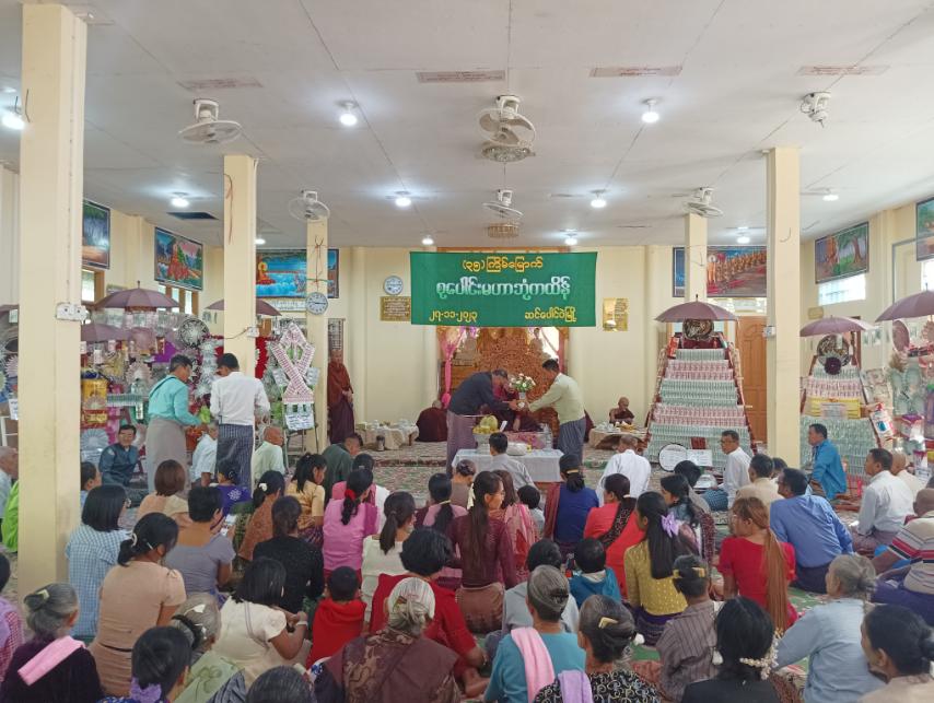 ထို့နောက် ဌာနဆိုင်ရာများ၊ လူမှုရေးအဖွဲ့များ စုပေါင်းလှူဒါန်းထားသော ပဒေသာပင်များအား မဲဖောက်ပေးပြီး သက်ဆိုင်ရာဌာနများမှ တာဝန်ရှိသူများက ဆရာတော်များထံ ဆက်ကပ်လှူဒါန်းခဲ့ပြီးနောက် ဆရာတော်သံဃာတော်များနှင့် တရားနာဧည့်ပရိသတ်အပေါင်းတို့က ဗုဒ္ဓသာသနံစိရံတိတု(၃)ကြိမ် ရွတ်ဆိုကာ အခမ်းအနားကို အောင်မြင်စွာရုပ်သိမ်းခဲ့ကြောင်းနှင့် ပင့်သံဃာအရှင်သူမြတ်တို့အား နေ့ဆွမ်းဆက်ကပ်လှူဒါန်းခဲ့ကြောင်း သိရသည်။