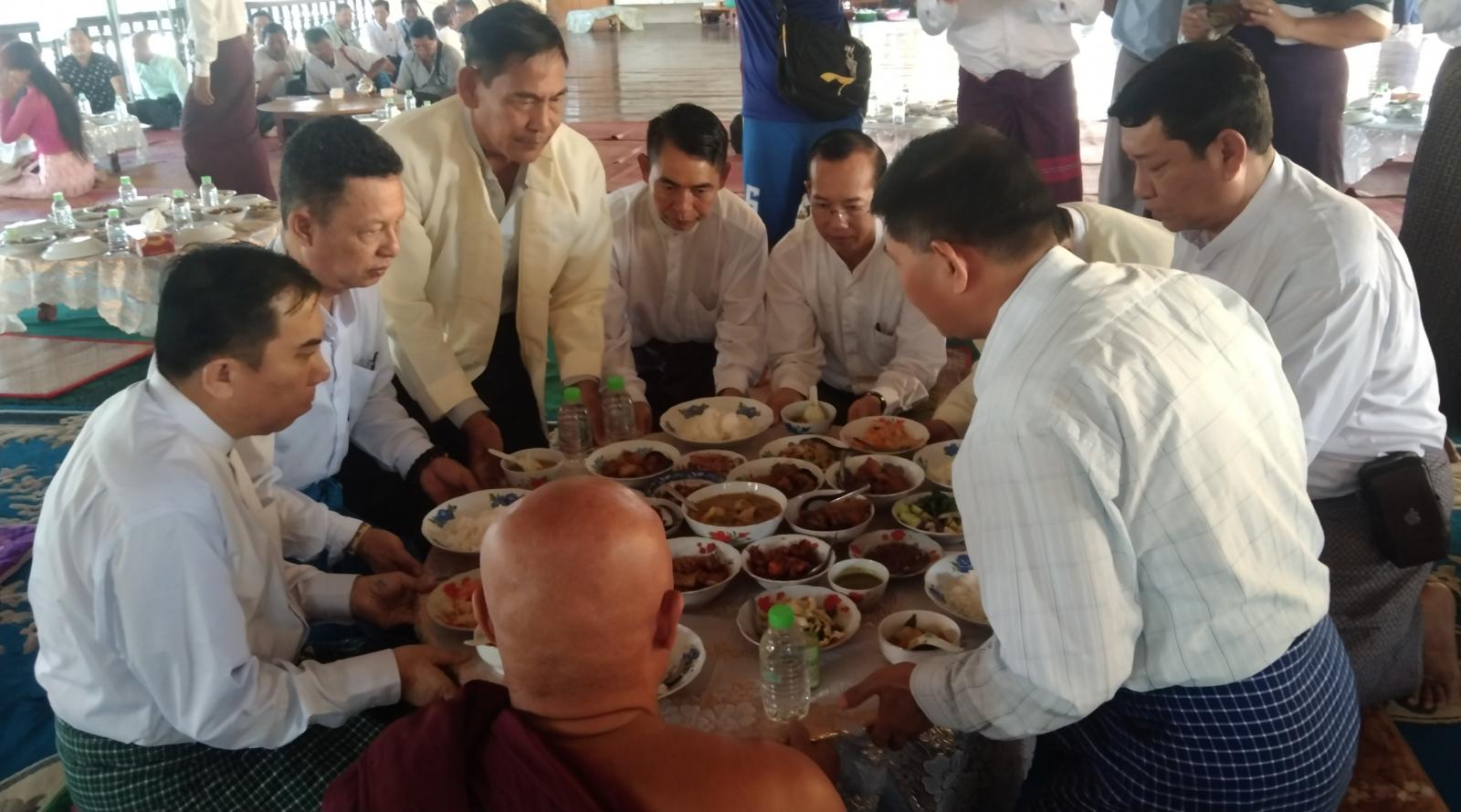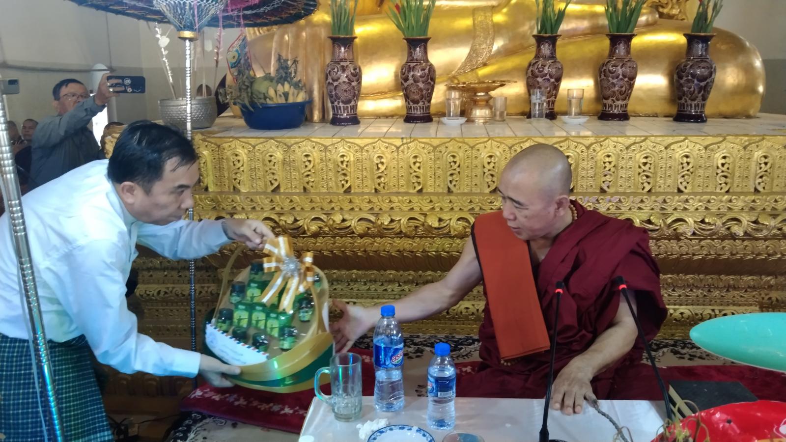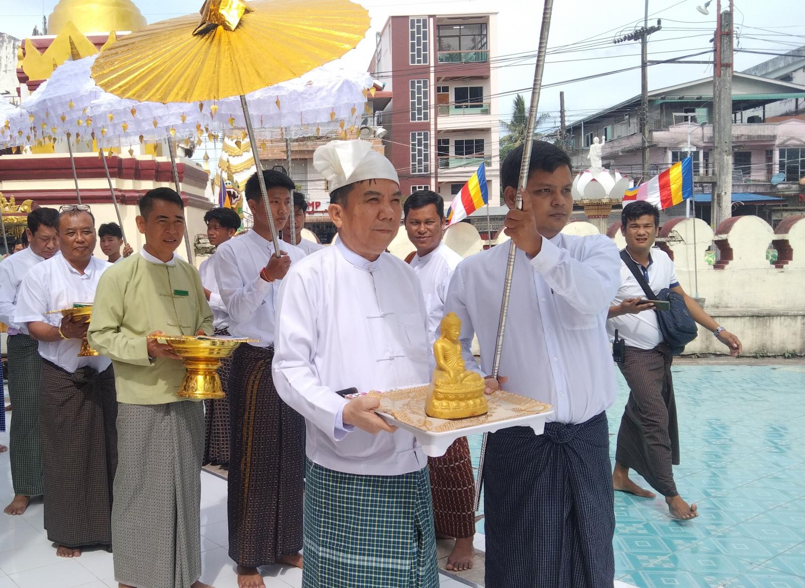 ဦးစွာ နိုင်ငံတော်ဗဟိုသံဃာ့ဝန်ဆောင် မြဝတီမြို့၊ မြသုခ၊ အမှတ်(၂၇၅) တပ်ဦးကျောင်းတိုက်ဆရာတော် အဂ္ဂမဟာသဒ္ဓမ္မဇောတိကဓဇဘဒ္ဒန္တ ဒေါက်တာပညာနန္ဒ အမှူးရှိသော ဆရာတော်၊ သံဃာ တော်အရှင်သူမြတ်တို့က နမောတဿ သုံးကြိမ်ရွတ်ဆို ဘုရားကန်တော့၍ အခမ်းအနားကို ဖွင့်လှစ်ပေးပြီး ခရိုင်စီမံအုပ်ချုပ်ရေး အဖွဲ့မှ အဖွဲ့ဝင် (၁) ဒုတိယ ဗိုလ်မှူးကြီးနိုင်ဝင်း၊ အဖွဲ့ဝင်(၂)ဦးစိန်သောင်း၊ ခရိုင်အထွေထွေအုပ်ချုပ်ရေးဦးစီး ဌာနမှ ဒုတိယခရိုင်အုပ်ချုပ်ရေးမှူး ဦးတင်ရွှေ၊ မြို့နယ်စီမံအုပ်ချုပ်ရေးအဖွဲ့ ဥက္ကဋ္ဌ မြို့နယ်အုပ်ချုပ်ရေးမှူး ဦးသက်လွင်၊ ခရိုင်နှင့် မြို့နယ်အဆင့် ဌာနဆိုင် ရာ တာဝန်ရှိသူများနှင့် ဧည့်ပရိသတ်အပေါင်းတို့က ငါးပါးသီလ ခံယူဆောက်တည်ကြသည်။