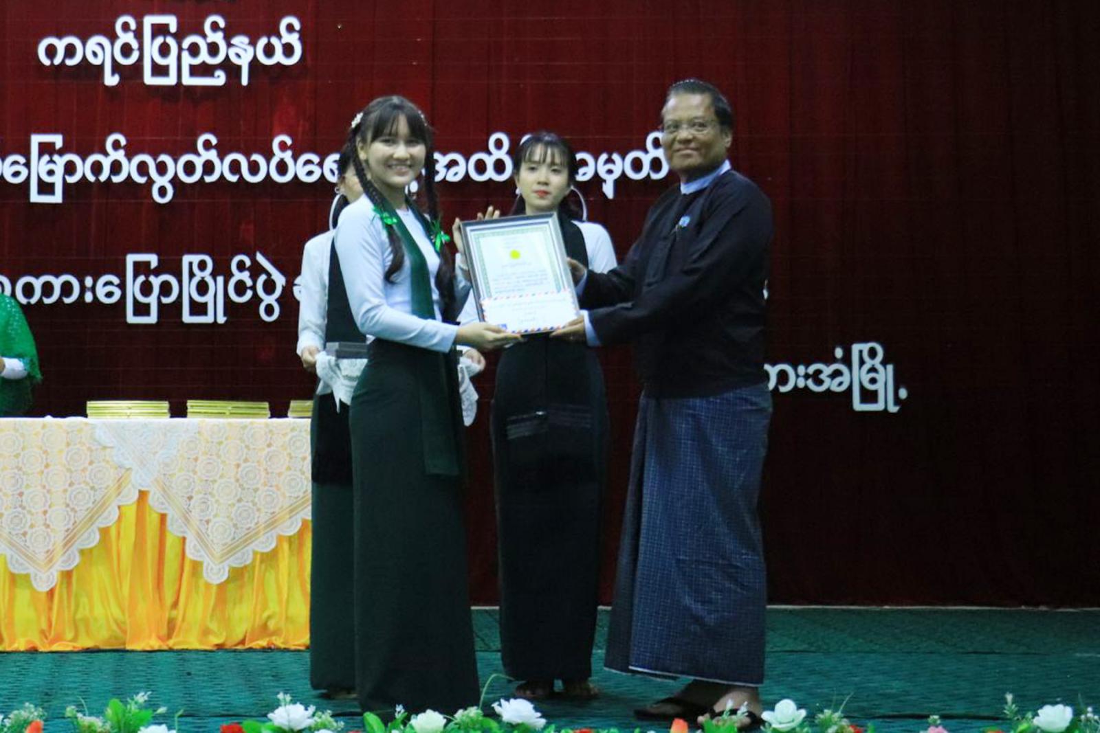 ဦးစွာ ကရင်ပြည်နယ်အစိုးရအဖွဲ့ ပြည်နယ်ဥပဒေချုပ်ဦးရဲလွင်က လွတ်လပ်ရေးတည်တံ့ခိုင်မြဲစေရန်နှင့် ပြည်ထောင်စုကြီးတိုးတက်ဖွံ့ဖြိုးစေရန်မှာ ပြည်ထောင်စုသားအားလုံး၏ တာဝန်ဖြစ်သည်နှင့်အညီ မမေ့လျော့ကြစေရန် လွတ်လပ်ရေးအထိမ်းအမှတ်ပွဲများ ကျင်းပခြင်းဖြစ်ပြီး ပျော်ပွဲရွှင်ပွဲနှင့်ပြပွဲပြိုင်ပွဲအမျိုးမျိုးတို့ကိုလည်း ကျင်းပပေးလျက်ရှိကြောင်း၊ တိုင်းတစ်ပါးသားတို့၏စိုးမိုးအုပ်ချုပ်မှုအောက်မှ လွတ်မြောက်လာခဲ့သော လွတ်လပ်သောအချုပ် အခြားအာဏာပိုင်နိုင်ငံအဖြစ်ရောက်ရှိသည့် လွတ်လပ်ရေးနေ့အထိမ်းအမှတ်ပြိုင်ပွဲများတွင် ဆုရရှိသောကျောင်းသား၊ ကျောင်းသူများအား ဂုဏ်ပြုချီးမြှင့်သည့်အခမ်းအနားဖြစ်ကြောင်း ပြောကြားသည်။