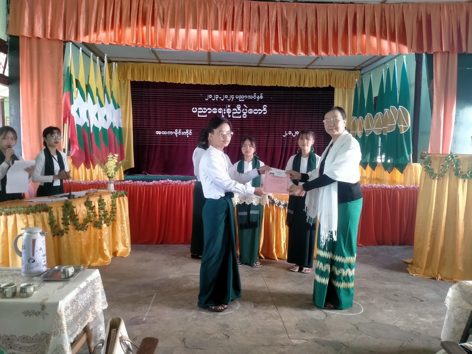 ဆက်လက်၍ ၂၀၂၃-၂၀၂၄ ပညာသင်နှစ်တွင် နိုင်ငံတော်အဆင့်၊ ရှမ်းပြည်နယ်အဆင့်၊ လွိုင်လင်ခရိုင် အဆင့်၊ မြို့နယ်အဆင့် ကာယ၊ ဉာဏစွမ်းရည်ပြိုင်ပွဲများ၌ ထူးချွန်ဆုရရှိကြသော ကျောင်းသား/ကျောင်းသူ (၃၅)ဦးကို မြို့နယ်ပညာရေးမှူး၊ ကျောင်းကော်မတီဝင်များ၊ ကျောင်းသားမိဘများက ဆုများ အသီးသီး ပေးအပ်ချီးမြှင့်ပေးခဲ့ကြောင်း သိရသည်။