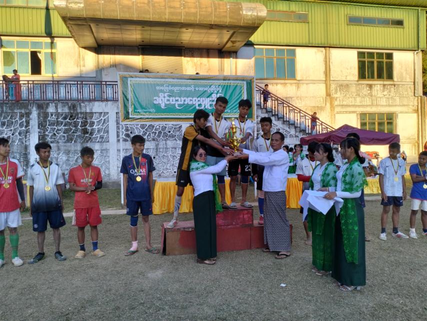 ထို့နောက် ခရိုင်ပညာရေးမှူးဒိုင်း အခြေခံပညာကျောင်းများရှိ အသင်းလိုက်ဘောလုံးပြိုင်ပွဲတွင် ဆုရရှိသည့်အသင်းများနှင့် တစ်ဦးချင်းစီအလိုက် အကောင်းဆုံးဆုများအား ခရိုင်ပညာရေးမှူး ဦးတင့်ဝေ၊ အ.ထ.ကကျောင်းအုပ်ကြီးများနှင့် အတန်းမှူးများက ဆုများအသီးသီးချီးမြှင့်ခဲ့ကြောင်း သိရသည်။