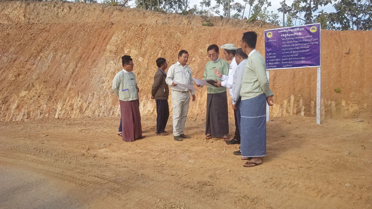 ဆက်လက်၍ ခရိုင်စီမံအုပ်ချုပ်ရေးအဖွဲ့ဥက္ကဋ္ဌ ဦးနေဝင်းနှင့် အဖွဲ့သည် ၂၀၂၃-၂၀၂၄ ဘဏ္ဍာရေးနှစ် ပြည်ထောင်စုငွေလုံးငွေရင်း ခွင့်ပြုရန်ပုံငွေဖြင့် လမ်းဦးစီးဌာနမှ တာဝန်ယူဆောင်ရွက်လျက်ရှိသော ဝမ်ဟတ်-ဝမ်စလောင်း-တာဆွတ်တိန်း-ဟိုမိန်းလမ်း (၇၈.၀၀၀) ကီလိုမီတာမှ (၈၅.၀၀၀) ကီလိုမီတာ အထိ (၂.၅၀၀) ကီလိုမီတာအား ယာဉ်အန္တရာယ်/လမ်းအန္တရာယ် ကင်းရှင်းစေရန်အတွက် ကျောက်တောင်/မြေတောင်လမ်းချဲ့ခြင်းလုပ်ငန်းခွင်ကို ကြည့်ရှုစစ်ဆေးပြီး စီမံကိန်း လုပ်ငန်းများအား အချိန်မီပြီးစီးရေးနှင့် ရေရှည်တည်တံ့ခိုင်မြဲရေးမှာကြားကာ ဒေသဖွံ့ဖြိုးရေး ဆိုင်ရာ တင်ပြချက်အပေါ် လမ်းညွှန်ဆောင်ရွက်ပေးခဲ့ကြောင်း သိရသည်။