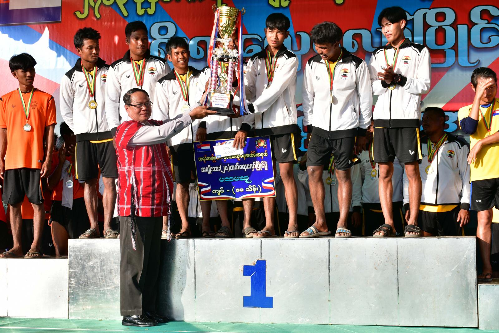 ထို့နောက် ဆုချီးမြှင့်ပွဲ အခမ်းအနားကို ဆက်လက်ကျင်းပရာ ပြည်နယ်ဝန်ကြီးချုပ်က ပြိုင်ပွဲတွင် ပူးပေါင်းပါဝင်ကူညီပေးကြသော ရေပြင်သက်ကယ်အဖွဲ့၊ ကျန်းမာရေးအဖွဲ့၊ ကြက်ခြေနီသူနာပြု တပ်ဖွဲ့တို့အား ဂုဏ်ပြုဆုငွေများ ပေးအပ်ချီးမြှင့်ခဲ့ပြီး ပြည်နယ်ဝန်ကြီးချုပ်(ငြိမ်း)ဦးဇော်မင်းနှင့်ဇနီး၊ ပြည်နယ်တရားလွှတ်တော်တရားသူကြီးချုပ်၊ ပြည်နယ်အစိုးရအဖွဲ့ဝင်များနှင့် ၎င်းတို့၏ ဇနီးများက နှစ်သိမ့်ဆုရရှိသော လှေလှော်အသင်းများ၊ အမျိုးသား၊ အမျိုးသမီး (၅)တက်လှော်၊(၇)တက်လှော်နှင့် နဂါးလှေ(၂၀) တက်လှော်ပြိုင်ပွဲတို့တွင် ဆုရရှိသော လှေလှော်အသင်းများအား တစ်ဦးချင်း လည်ဆွဲဆု၊ ငွေသားဆုနှင့် ဆုဖလားများ ပေးအပ်ချီးမြှင့်ခဲ့ကြပြီး ပြည်နယ်ဝန်ကြီးချုပ်နှင့်ဇနီးတို့က နဂါးလှေ(၂၀)တက်လှော်ပြိုင်ပွဲတွင် ပထမဆုရရှိသော အမျိုးသား/အမျိုးသမီး မြို့မတိုက်နယ်လှေလှော်အသင်းတို့အား တစ်ဦးချင်းလည်ဆွဲဆု၊ ငွေသားဆု(၁၀)သိန်းကျပ်စီနှင့် ဆုဖလားတို့ကို ပေးအပ်ချီးမြှင့်ခဲ့ကြောင်း သိရသည်။