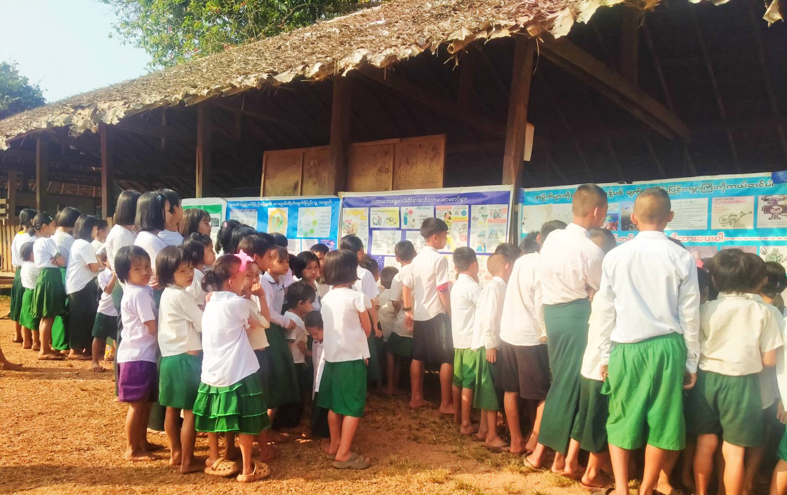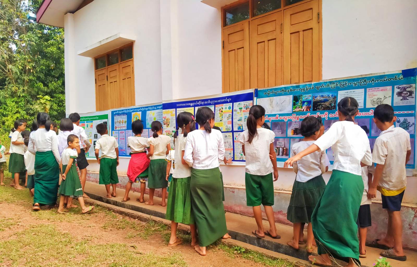 ထို့နောက် ပြန်ကြားရေးနှင့်ပြည်သူ့ဆက်ဆံဦးစီးဌာနမှ ပြသသည့် ပလတ်စတစ်အမှိုက်များ၏ ထိန်းသိမ်းစွန့်ပစ်နည်းများ၊ အပှုဒဏ်ကြိုတင်ကာကွယ်ရေးနည်းလမ်းများ၊ မူးယစ်ဆေးဝါးအန္တရာယ် ကြိုတင်ကာကွယ်ရေးဆိုင်ရာ အသိပညာပေးနံရံကပ်စာစောင်များအား ကျောင်းသား/ သူများမှ စိတ်ပါဝင်စားစွာ ကြည့်ရှုလေ့လာခဲ့ကြောင်း သိရသည်။