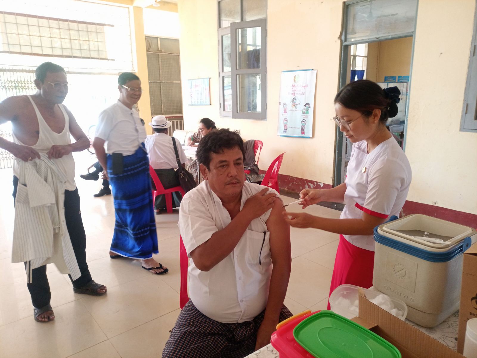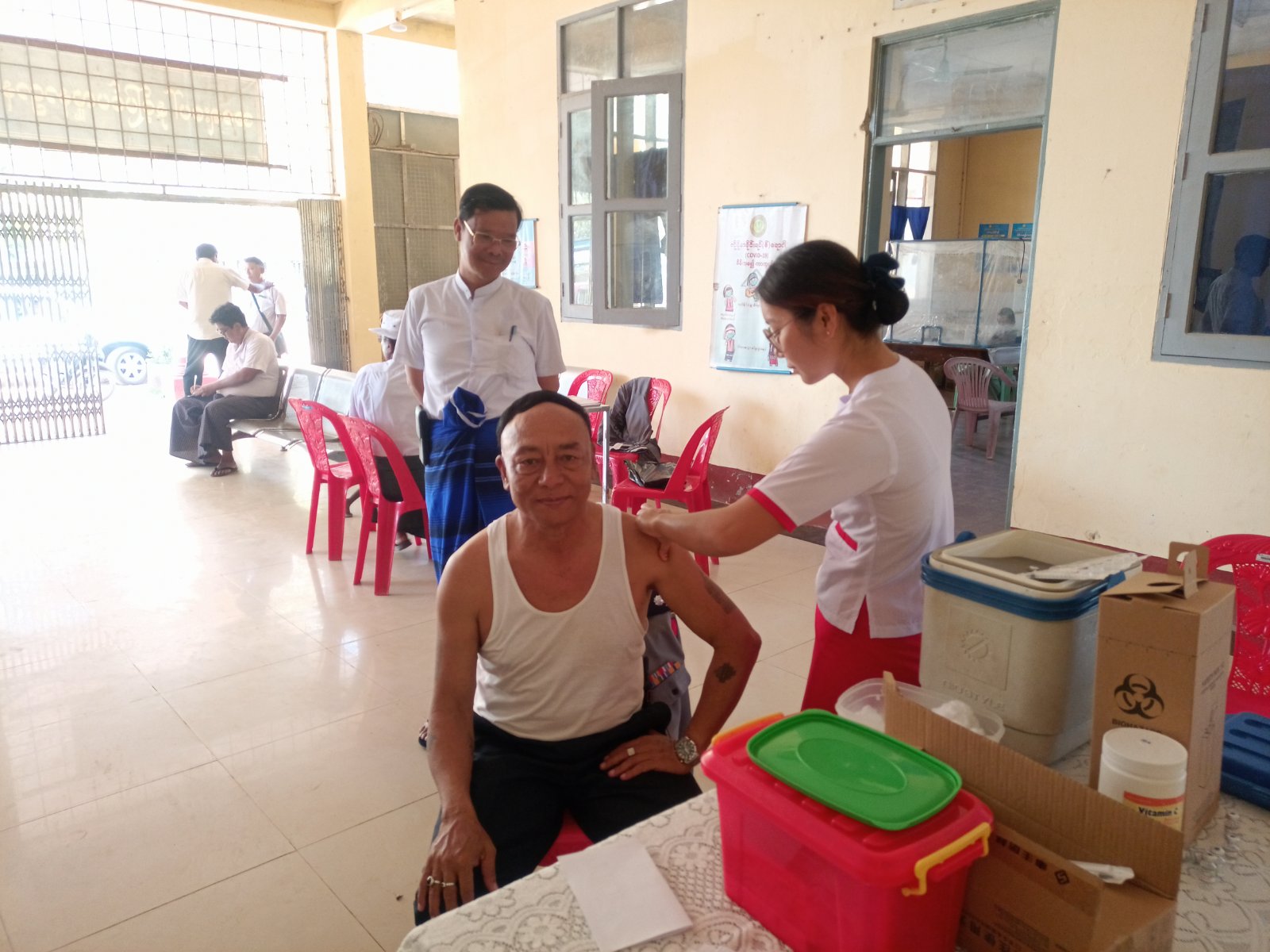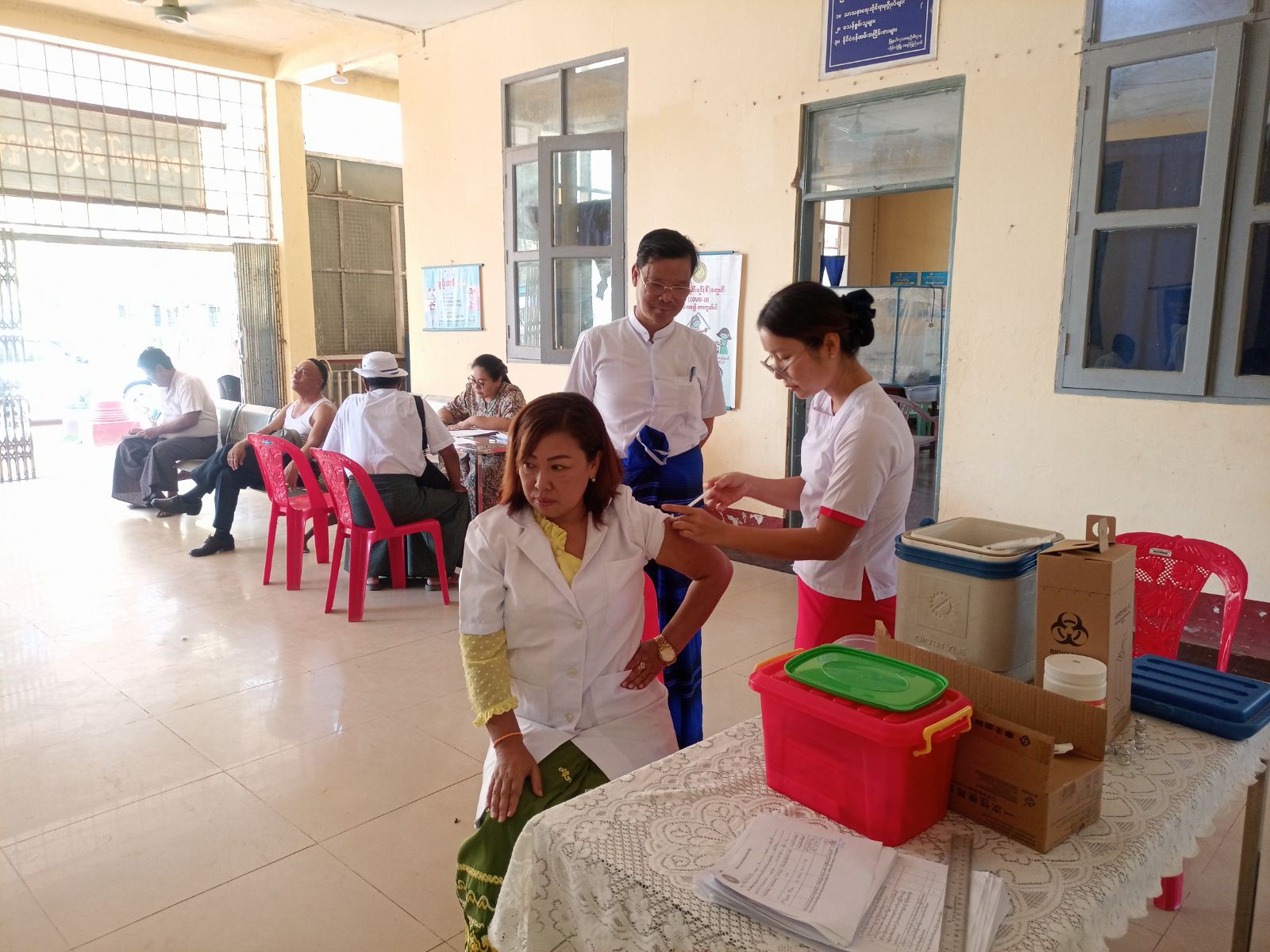 ကရင်ပြည်နယ်၊ ဘားအံခရိုင်၊ လှိုင်းဘွဲမြို့နယ်တွင် ကိုဗစ်-၁၉ ရောဂါကာကွယ်နိုင်ရန်အတွက် အသက်(၅၀)နှစ်အထက် နိုင်ငံ့ဝန်ထမ်းများအား ကိုဗစ်-၁၉ရောဂါကာကွယ်ဆေး(Pfizer)ကို ယနေ့နံနက်(၁၁)နာရီအချိန်က လှိုင်းဘွဲမြို့ ပြည်သူ့ဆေးရုံး၌ စတင်ထိုးနှံပေးခဲ့ကြောင်း သိရသည်။