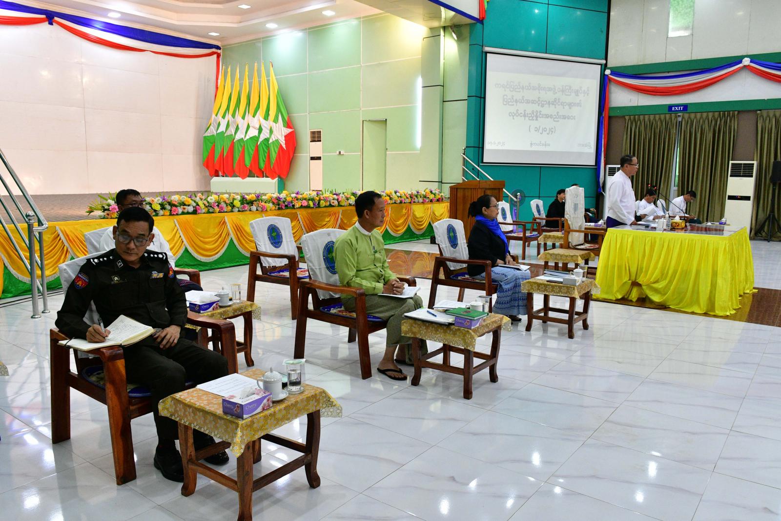 ဒေသတွင်းလုံခြုံရေး၊ တရားဥပဒေစိုးမိုးရေး၊ ဒေသဖွံ့ဖြိုးရေးနှင့် ပြည်သူ့အကျိုးပြုလုပ်ငန်းများ ဆောင်ရွက်ရာတွင် ပိုမိုထိရောက်မြန်ဆန်စေရေးအတွက် ကရင်ပြည်နယ်အစိုးရအဖွဲ့ ပြည်နယ်ဝန်ကြီးချုပ်နှင့် ပြည်နယ်အဆင့်ဌာနဆိုင်ရာများ လုပ်ငန်းညှိနှိုင်း အစည်းအဝေး (၁/၂၀၂၄)ကို ယမန်နေ့ နံနက် ၁၀ နာရီက ဘားအံမြို့၊ ဇွဲကပင်ခန်းမ၌ ကျင်းပသည်။