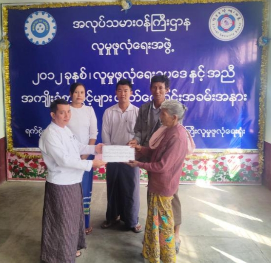 ဆက်လက်၍ Bondsin Metal စက်ရုံမှ အာမခံအလုပ်သမား ဦးအေးချမ်းမောင်သည် (၂၉-၈-၂၀၂၂)ရက်နေ့တွင် စက်ရုံနံရံသန့်ရှင်းရေးပြုလုပ်နေစဉ် အမြင့် (၁၅)ပေခန့်မှ ပြုတ်ကျ၍ ခါးအောက်ပိုင်း ခါးဆစ်ကျိုးဒဏ်ရာရရှိသည့်အတွက် အမြဲတမ်းမသန်စွမ်းအကျိုးခံစားခွင့်ပြု ငွေကျပ် ၃၈၁၀၂၄၀/ (သုံးဆယ့်ရှစ်သိန်းတစ်သောင်းနှစ်ရာ့လေးဆယ့်တိတိ) တို့ကို ကာယကံရှင်ထံသို့လည်းကောင်းတို့၏ ကျန်ရစ်သူမိသားစုအကျိုးခံစားခွင့် ထောက်ပံ့ကြေးစုစုပေါင်း ငွေကျပ် ၈၄၂၂၇၄၀/- ကျပ်ရှစ်ဆယ့်လေးသိန်း နှစ်သောင်းနှစ်ထောင့် ခုနှစ်ရာလေးဆယ်တိတိ)ကို အလုပ်ဌာနမှ တာ၀န်ရှိသူများ၊ ရုံးခွဲတာဝန်ခံများ၊ အလုပ်သမားရေးရာ ညှိနှိုင်းရေးကော်မတီ (WCC)အဖွဲ့ဝင်များ၊ မိသားစု၀င်များနှင့် စက်ရုံတာဝန်ရှိသူများ ရှေ့မှောက်တို့တွင် ရန်ကုန်တိုင်းဒေသကြီ လူမှုဖူလုံရေးရုံးမှ တာ၀န်ခံအရာရှိ ဦးသိန်းနွဲ့ဦးက ထုတ်ပေးလျက်ရှိကြောင်း သိရသည်။
