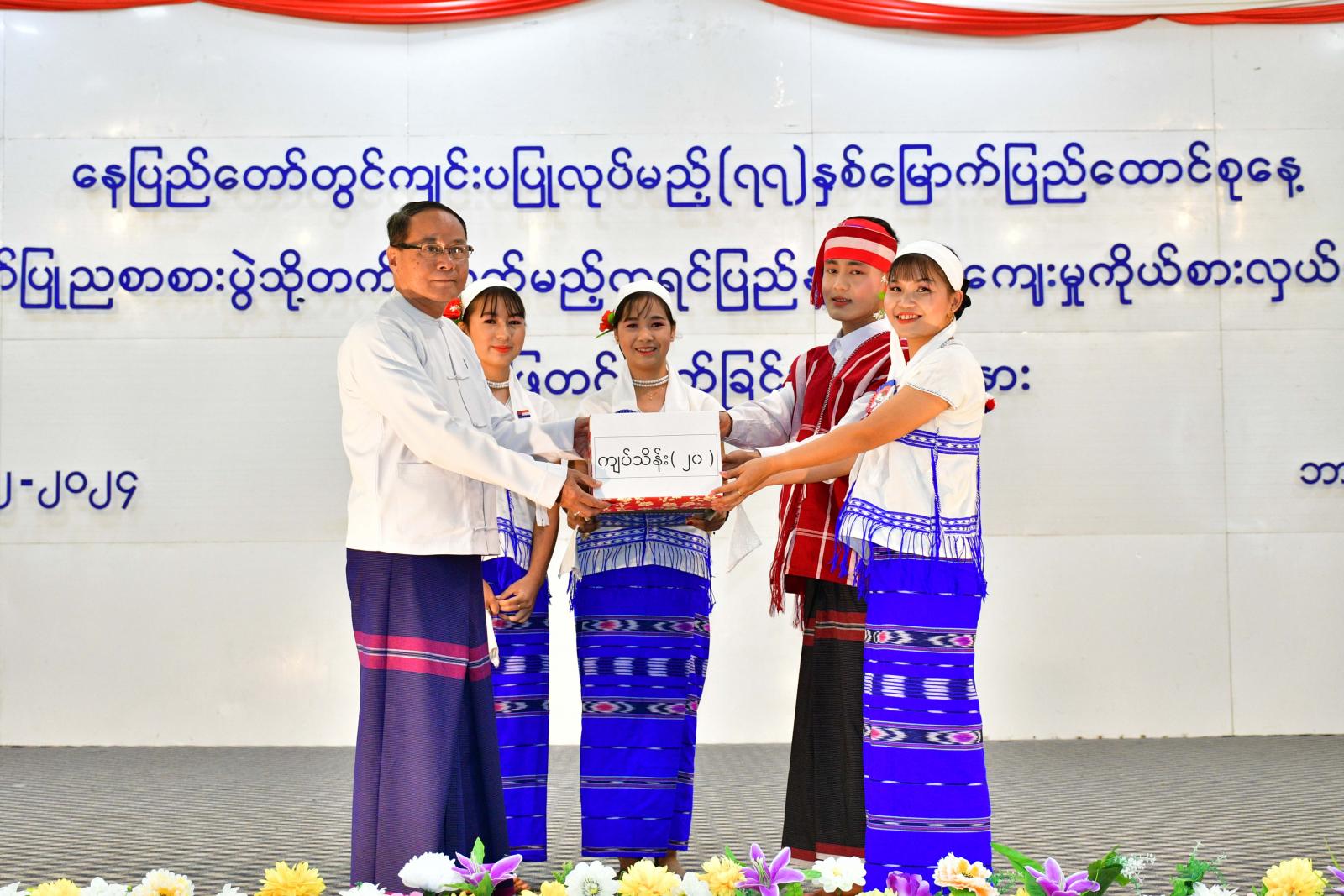 ထို့နောက် ပြည်နယ်ဝန်ကြီးချုပ်က ကရင်ပြည်နယ်ယဉ်ကျေးမှုကိုယ်စားလှယ်အဖွဲ့အား ဂုဏ်ပြုထောက်ပံ့ငွေ ကျပ် သိန်း(၂၀)ကို ချီးမြှင့်ပေးအပ်ပြီး ယဉ်ကျေးမှုကိုယ်စားလှယ်အဖွဲ့မှ (၇၇)နှစ်မြောက် ပြည်ထောင်စုနေ့ဂုဏ်ပြု ညစာစားပွဲအခမ်းအနားတွင် တင်ဆက်မည့် မျက်မှောက်ခေတ် ကရင်ရိုးရာဒုံးအက အပါအဝင် ကိုလိုနီခေတ်ဒုံးအက၊ ရဓနာဆုတောင်းတေးသီချင်း၊ ဆယ့်နှစ်လ ရာသီဒုံးအကတို့နှင့် ကရင်တေးသံရှင်များက တေးသီချင်းများဖြင့် သီဆိုကပြ ဖျော်ဖြေကြရာ ပြည်နယ်ဝန်ကြီးချုပ်၊ ပြည်နယ်တရားလွှတ်တော်တရားသူကြီး ချုပ်နှင့် ပြည်နယ်အစိုးရအဖွဲ့ဝင်များ က ဂုဏ်ပြုဆုငွေများပေးအပ်ချီးမြှင့်ခဲ့ကြသည်။