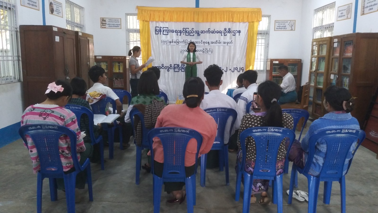 ရှေးဦးစွာ ပြန်ကြားရေးနှင့်ပြည်သူ့ဆက်ဆံရေးဦးစီးဌာနမှ ဦးစီးမှူး ဒေါ်အေးမိုးမိုးမြင့်က ကျောင်းသား/ကျောင်းသူလူငယ်များအနေဖြင့် စာကြည့်တိုက်သို့ စဉ်ဆက်မပြတ် ဝင်ထွက်သွားလာတက်သည့် အလေ့အထများဖြစ်ပေါ်စေရန်နှင့် တိုင်းရင်းသားစည်းလုံးညီညွှတ်ခြင်း၏ တန်ဖိုးနှင့် အရေးပါပုံ၊ တိုင်းရင်းသားစည်းလုံးညီညွှတ်ခြင်း၏ အနှစ်သာရများ၊ ပြည်ထောင်စုနေ့နှင့်ပတ်သက်သည့် ဗဟုသုတများအား လေ့လာသိရှိနိုင်စေရန် ရည်ရွယ်၍ ယခုကဲ့သို့ ပြိုင်ပွဲများ ကျင်းပရခြင်းဖြစ်ကြောင်း ရှင်းလင်းပြောကြားခဲ့သည်။