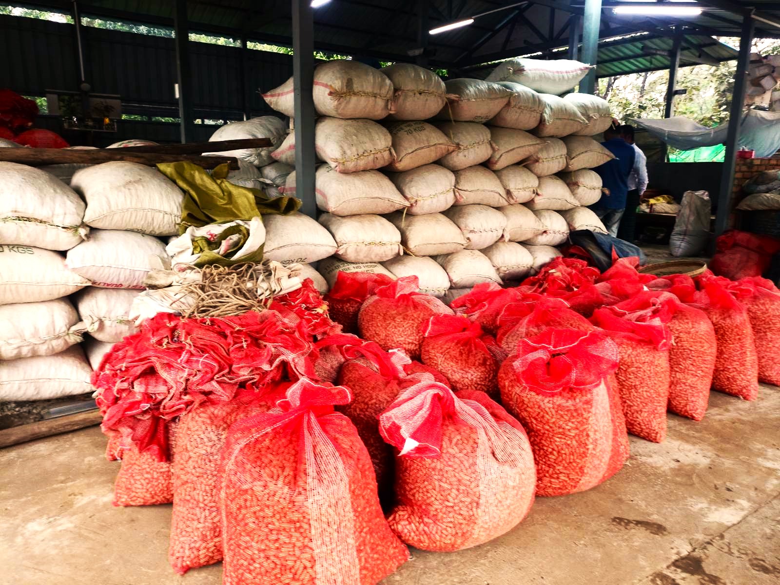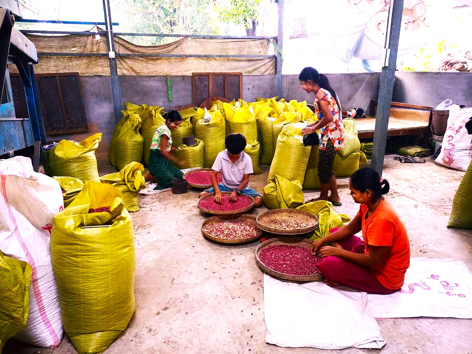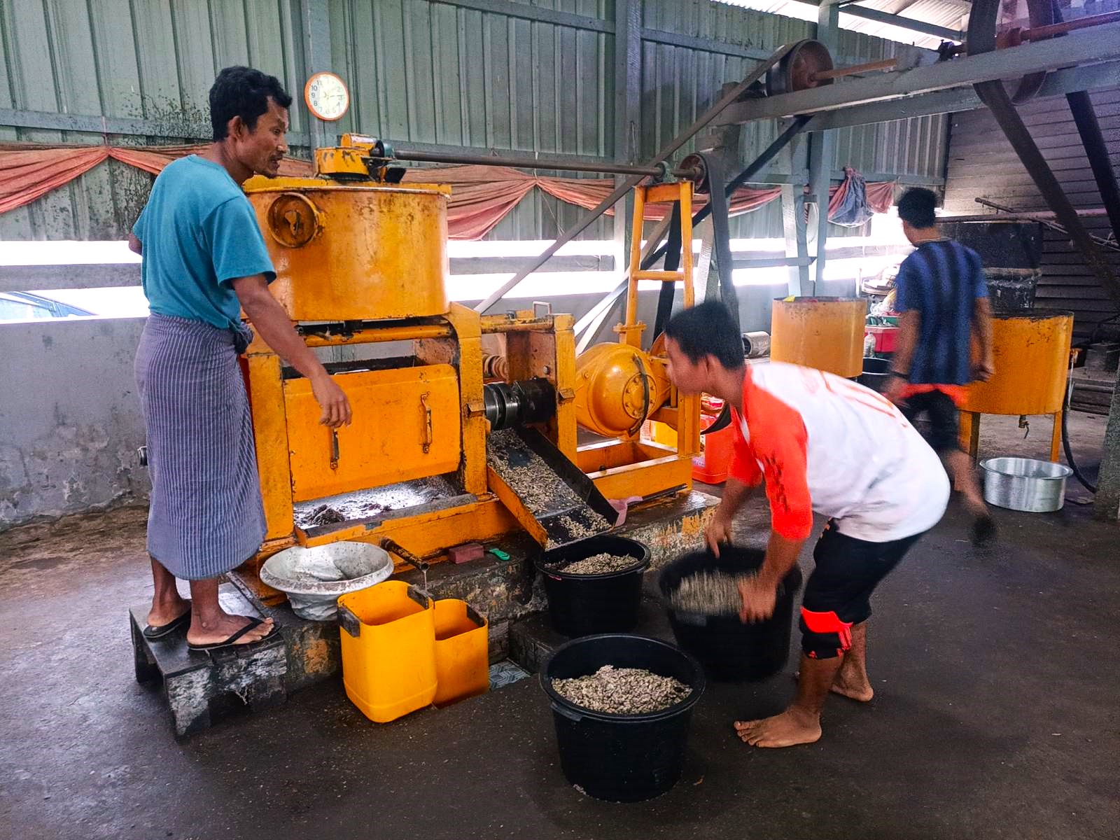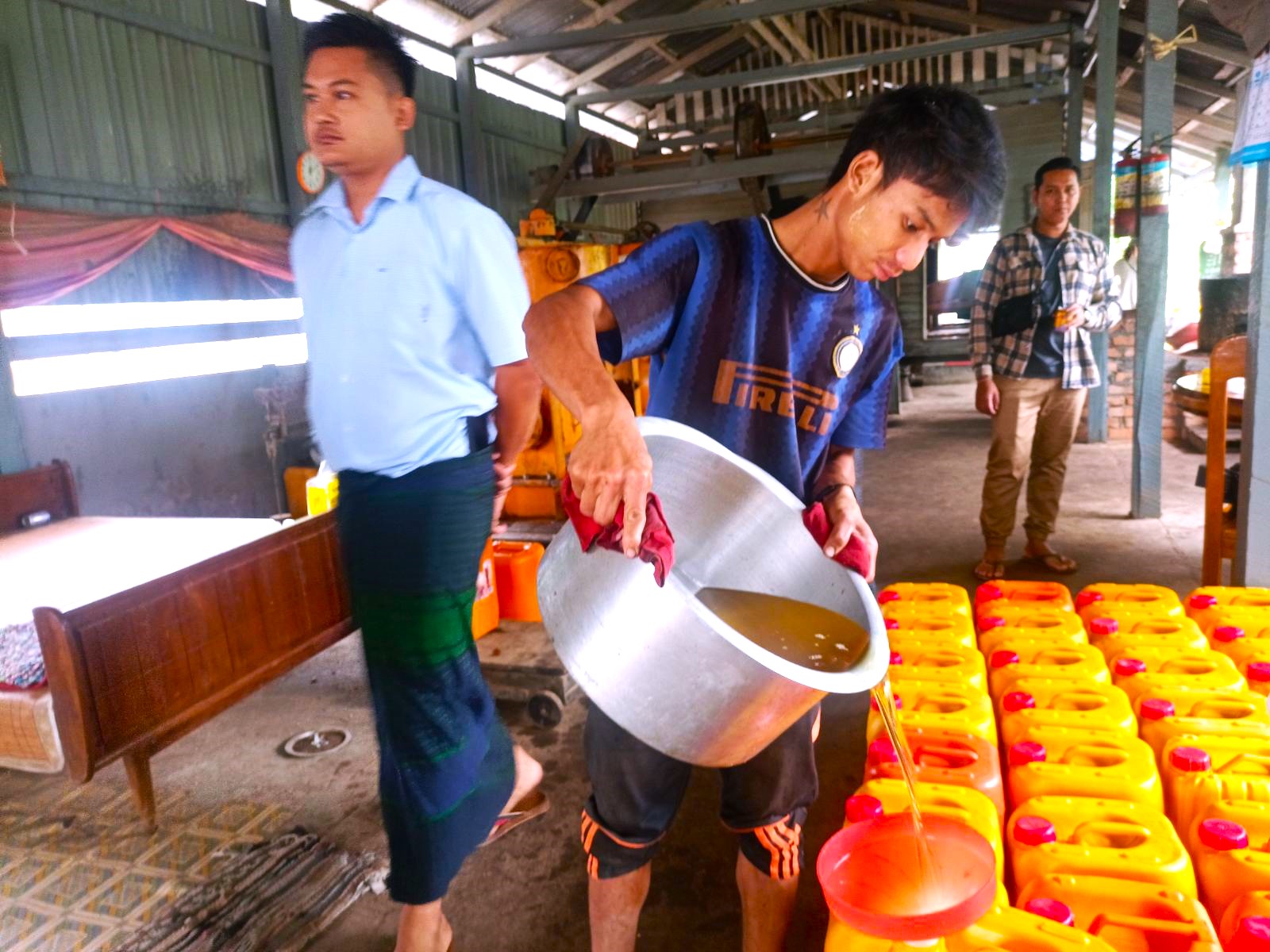 ဆောင်းမြေပဲ တစ်ဧက အထွက်နှုန်းမှာ ပျမ်းမျှတင်း (၇၀) ခန့် (အခွန်ပါ) ထွက်ရှိပြီး၊ ထွက်ရှိသော မြေပဲများကို မြေပဲဆီ ကြိတ်ခြင်း၊ မြေပဲဆားလှော်အဖြင့် ရောင်းချခြင်းနှင့် ရန်ကုန်၊ မန္တလေးပွဲရုံများသို့ တင်ပို့ရောင်းချကြကြောင်း၊ မြေပဲဆံ(၁၀)ပိဿာကို စက်ဖြင့် ကြိတ်ခွဲလျှင် မြေပဲဆီ (၄)ပိဿာ ထွက်ရှိကြောင်း၊ မြေပဲဆီတစ်ပိဿာ စျေးနှုန်းမှာ ငွေကျပ် (၁၆၀၀၀) ရောင်းချကြောင်း၊ မြေပဲတောင့်တစ်တင်း (၄၂၀၀၀) ကျပ်၊ မြေပဲကြိတ်ဖတ်တစ်ပိဿာ (၃၀၀၀)ကျပ် စျေးရရှိကြောင်း၊ မြေပဲကြိတ်ဖတ်များကို သက်သတ်လွတ် ငပိပုံစံ စားသုံးခြင်း၊ တိရိစ္ဆာန်အစားအစာနှင့် သဘာဝ မြေသြဇာ ပြုလုပ်ခြင်းတို့အတွက် အသုံးပြုကြကြောင်း၊ မြေပဲဆံ(၃၀၀)တင်းကြိတ်ခွဲလျှင် စက်သုံးဆီ (၁၄)ဂါလံ ကုန်ကျပါကြောင်း ရွှေကောင်းစံ ဆီစက်ပိုင်ရှင် ဒေါ်နီနီအေးက ရှင်းပြသည်။