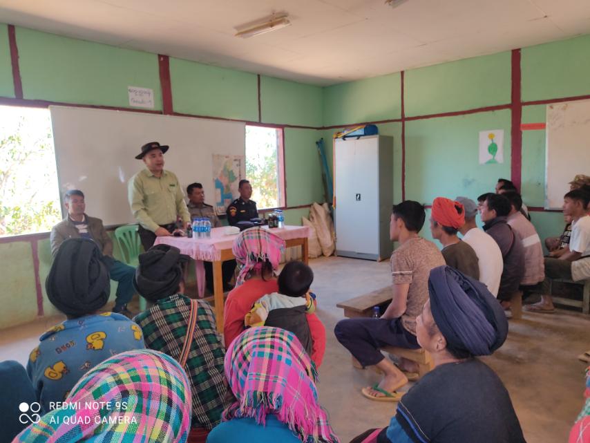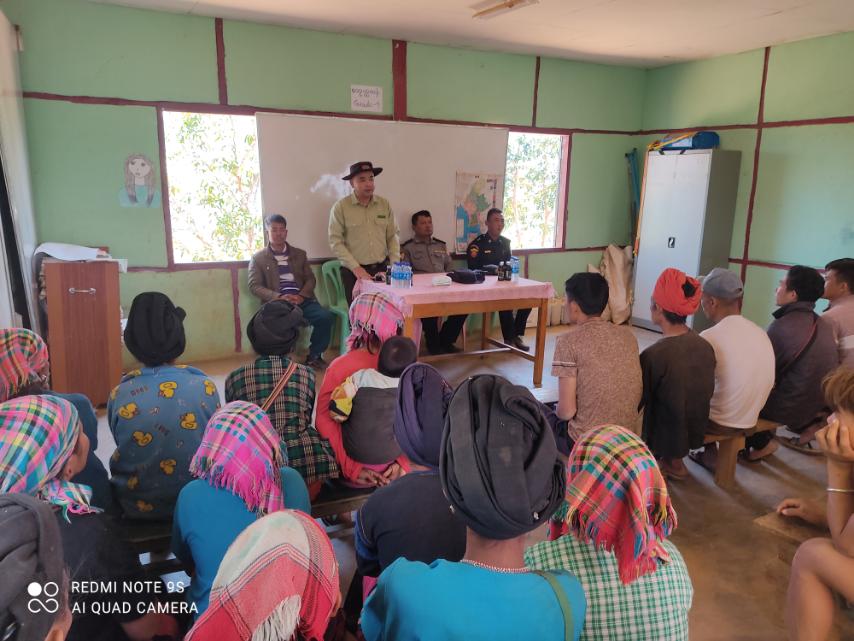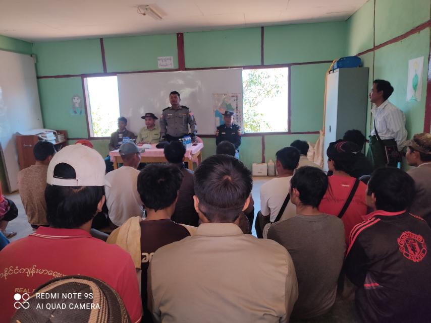 တွေ့ဆုံပွဲတွင် မိုင်းခတ်မြို့နယ်ရဲတပ်ဖွဲ့ ရဲမှူးအေးထွန်း၊ မြို့နယ်အထွေထွေအုပ်ချုပ်ရေးဦးစီးဌာန၊ ဒုတိယမြို့နယ် အုပ်ချုပ်ရေးမှူး ဦးစိုင်းဆိုင်လွန်နှင့် မြို့နယ်အဆင့်ဌာနဆိုင်ရာများ ပါဝင်သော စစ်ကြောင်းကြီး (၅) ကြောင်းတို့က ဒေသခံတိုင်းရင်းသားပြည်သူများနှင့်တွေ့ဆုံ၍ ကျေးရွာနေပြည်သူများအားလုံခြုံရေး၊ တရားဥပဒေစိုးမိုးရေးနှင့်ဒေသဖွံ့ဖြိုးတိုးတက်ရေးလုပ်ငန်းများကို ဆွေးနွေးပြောကြားရာတွင် လူကုန်ကူးမှုအန္တရာယ်အကြောင်းနှင့်မှုခင်းပိုင်းဆိုင်ရာများ၊ မူးယစ်ဆေးဝါးရောင်းဝယ်သုံးစွဲခြင်း၏ပြစ်မှုပြစ်ဒဏ်နှင့်ဆိုးကျိုးများ၊ အသက် (၁၀) နှစ်အထက်ရှိသူများအား အီလက်ထရောနစ်စနစ်ဖြင့် ဇီဝအချက်အလက်များကောက်ယူနေမှုများ၊ စပါး၊ ပြောင်းများ ပိုးကျပါက ဆောင်ရွက်သင့်သည့်နည်းလမ်းများ၊စားသုံးဆီဖူလုံစေရေး နေကြာစိုက်ပျိုးကြရန်၊ ကျွဲ၊ နွား၊ ကြက်၊ ဝက်မွေးမြူရာတွင် ရောဂါကူးစက်မှုမှ ကာကွယ်ရေး၊ သတင်းအမှားအမှန်ခွဲခြားနိုင်ရေး၊ တောင်ယာခုတ်ထွင်ရာတွင် လိုက်နာဆောင်ရွက်ရမည့်အချက်များ၊ ဥပဒေများအကြောင်းနှင့် ကျေးလက်မီးလင်းရေး၊ ကျေးရွာလယ်ယာကုန်ထုတ်လမ်းများအကြောင်း၊ ပွင့်လင်းရာသီတွင် မီးဘေးအန္တရာယ်ရှောင်ရန်၊ ဆောင်ရန်အချက်များကို မြန်မာဘာသာ၊ အာခါဘာသာတို့ဖြင့် အသိပညာပေးဆွေးနွေးဟောပြောခဲ့ကြသည်။
