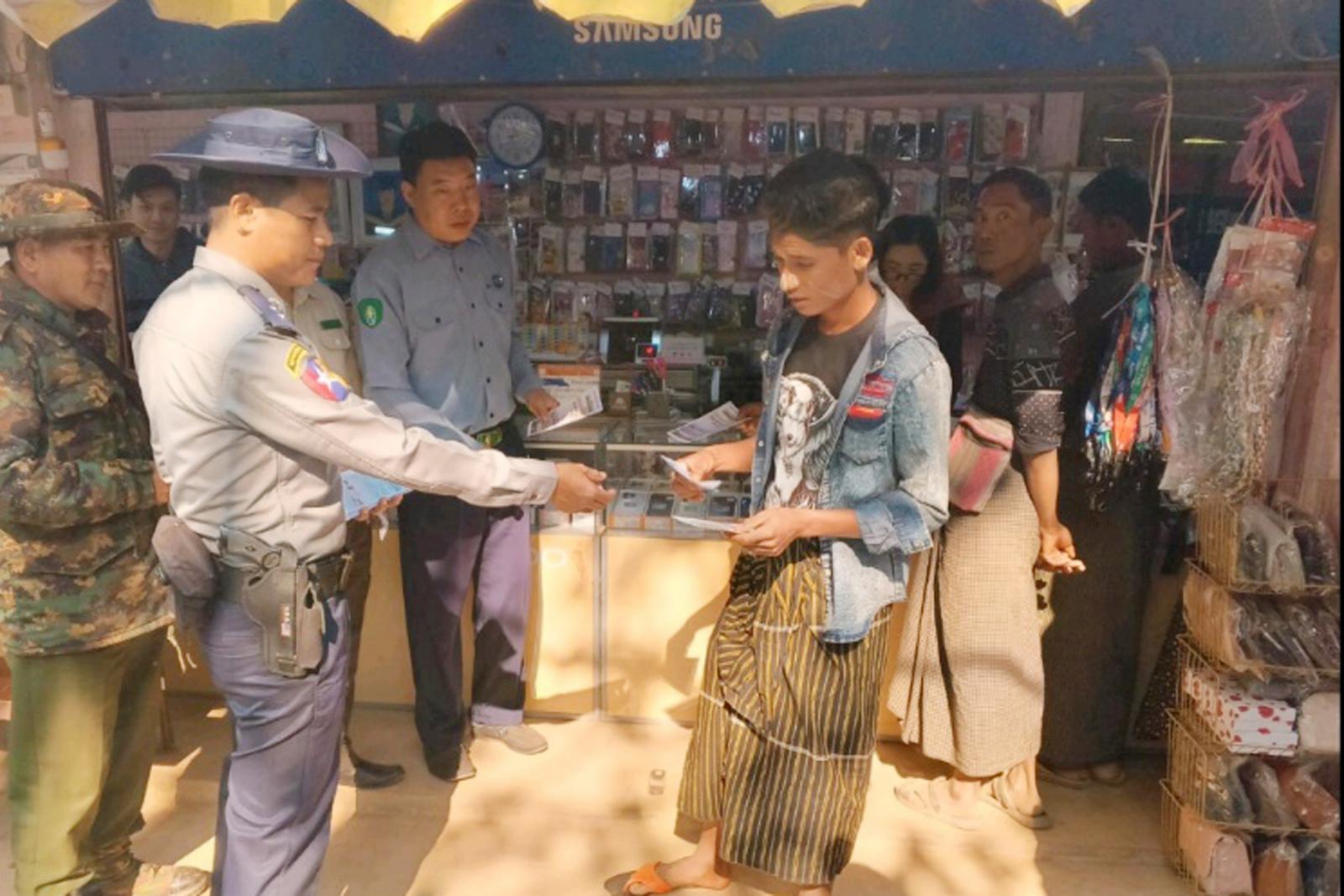 ထို့နောက် ရဲအုပ်နိုင်နိုင်ဝင်းနှင့် အဖွဲ့တို့က ရဲတပ်သားသစ်ဆိုင်ရာနှင့် ရဲမှုထမ်းခြင်းဆိုင်ရာများ ဖော်ပြပါရှိသည့် အသိပညာပေးလက်ကမ်းစာစောင်များကို ပြည်သူများ အသိပညာများရရှိနိုင်ရေးအတွက် ပြည်သူများ၏ လက်ဝယ်အရောက် ဖြန့်ဝေပေးခဲ့ကြောင်း သိရသည်။