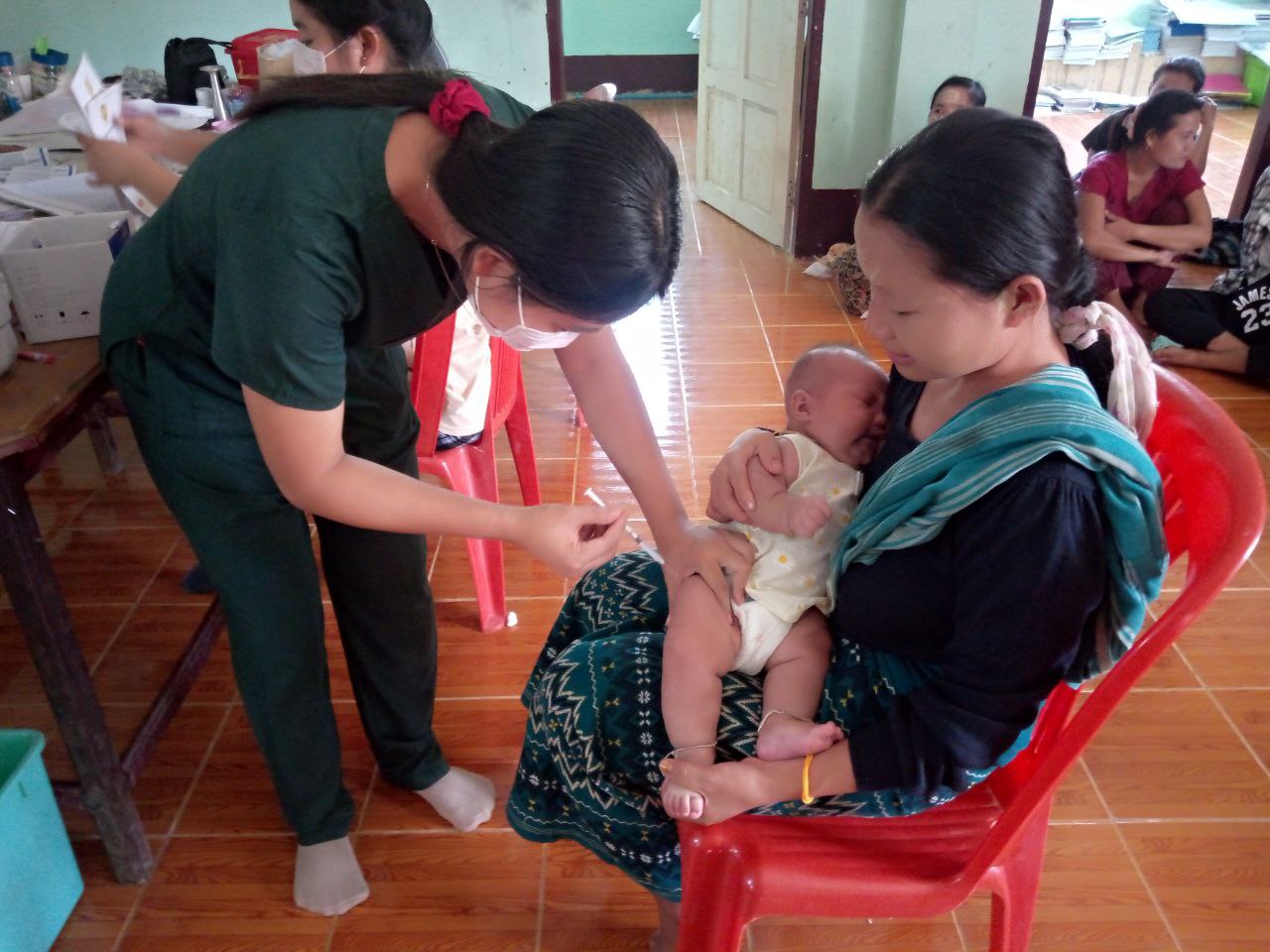 ကရင်ပြည်နယ်၊ ဘားအံခရိုင် ရှမ်းရွာသစ်မြို့ပေါ်ရပ်ကွက်များနှင့် ကျေးရွာအုပ်စုများရှိ အသက်(၂)နှစ်အောက် ကလေးငယ်များ ကူးစက်ရောဂါတို့မှ ကင်းဝေးစေရန်နှင့် ကျန်းမာရေးကောင်းမွန်ပြီး ဉာဏ်ရည်ထက်မြက်စေရန်ရည်ရွယ်၍ ပုံမှန်ကာကွယ်ဆေးထိုးခြင်းလုပ်ငန်းများနှင့် ကျန်းမာရေးစောင့်ရှောက်မှုလုပ်ငန်းများကို ယနေ့နံနက် (၉)နာရီအချိန်တွင် ကျေးလက်ကျန်းမာရေးဌာန၌ ဆောင်ရွက်ပေးလျက်ရှိကြောင်း သိရှိရသည်။