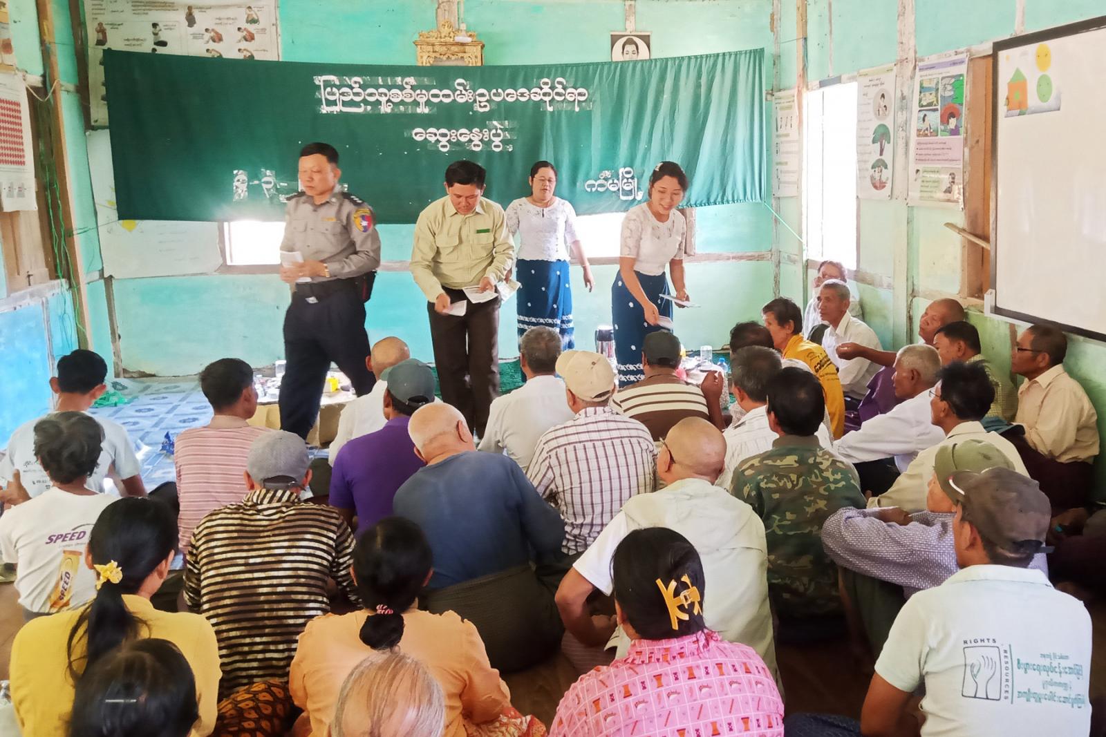 အဆိုပါဆွေးနွေးပွဲတွင် ဒုတိယမြို့နယ်အုပ်ချုပ်ရေးမှူး ဦးသက်လွင်ဦး၊ မြို့နယ်ဥပဒေအရာရှိ ဒေါ်ခင်ပြည့်စုံနှင့် ဒုတိယမြို့နယ်ရဲတပ်ဖွဲ့မှူး ဒုရဲမှူး ကျော်နိုင်ဦးတို့က ပြည်သူ့စစ်မှုထမ်းဥပဒေနှင့်ပတ်သက်၍ မြို့နယ်အဆင့်ကော်မတီများ၊ ရပ်ကွက်ကျေးရွာအဆင့် ကော်မတီများ ဖွဲ့စည်းသွားမည့်အခြေအနေများ၊ ပြည်သူ့စစ်မှုထမ်း ဥပဒေပါပြဋ္ဌာန်းချက်များ၊ ပြည်သူ့စစ်မှုထမ်ဥပဒေ၏ ရည်ရွယ်ချက်များ၊ စစ်မှုထမ်းစနစ်ကျင့်သုံးရသည့် အကြောင်းအရင်းများ၊ ပြည်သူ့စစ်မှုထမ်းတို့၏ အကျိုးခံစားခွင့်များနှင့် ပြည်သူ့စစ်မှုထမ်း ဥပဒေပြဋ္ဌာန်းလိုက်သည်နှင့် ချက်ချင်း စစ်မှုထမ်းရန်ခေါ်ယူမည်မဟုတ်ပါကြောင်း၊ ပြည်သူ့စစ်မှုထမ်းနည်းဥပဒေများ စနစ်တကျရေးဆွဲပြီးချိန်မှသာ စစ်မှုထမ်းစနစ်စတင်မည်ဖြစ်ပါကြောင်း၊ ပြည်သူ့စစ်မှုထမ်းရန် အသက်အရွယ်အကျုံးဝင်သူများကို အတင်းအဓမ္မခေါ်ယူ တာဝန်ထမ်းဆောင်စေမည်မဟုတ်ဘဲ ပညာသင်ကြားနေသူများ၊ နိုင်ငံ့ဝန်ထမ်းများ၊ မိအိုဖအိုပြုစုလုပ်ကျွေးနေသူများ၊ ဆေးကုသမှုခံယူနေသူများကို ယာယီရွှေ့ဆိုင်းပေးထားမည်ဖြစ်ပါကြောင်းနှင့် စိုးရိမ်ရန်မလိုပါကြောင်း ရှင်းလင်းဆွေးနွေးခဲ့ကြပြီး ပြည်သူ့စစ်မှုထမ်းဥပဒေဆိုင်ရာ သိကောင်းစရာ သတင်းစကားလက်ကမ်းစာစောင်များကို ဖြန့်ဝေပေးခဲ့ကြောင်း သိရသည်။