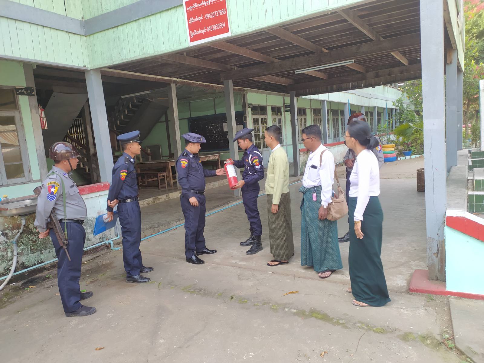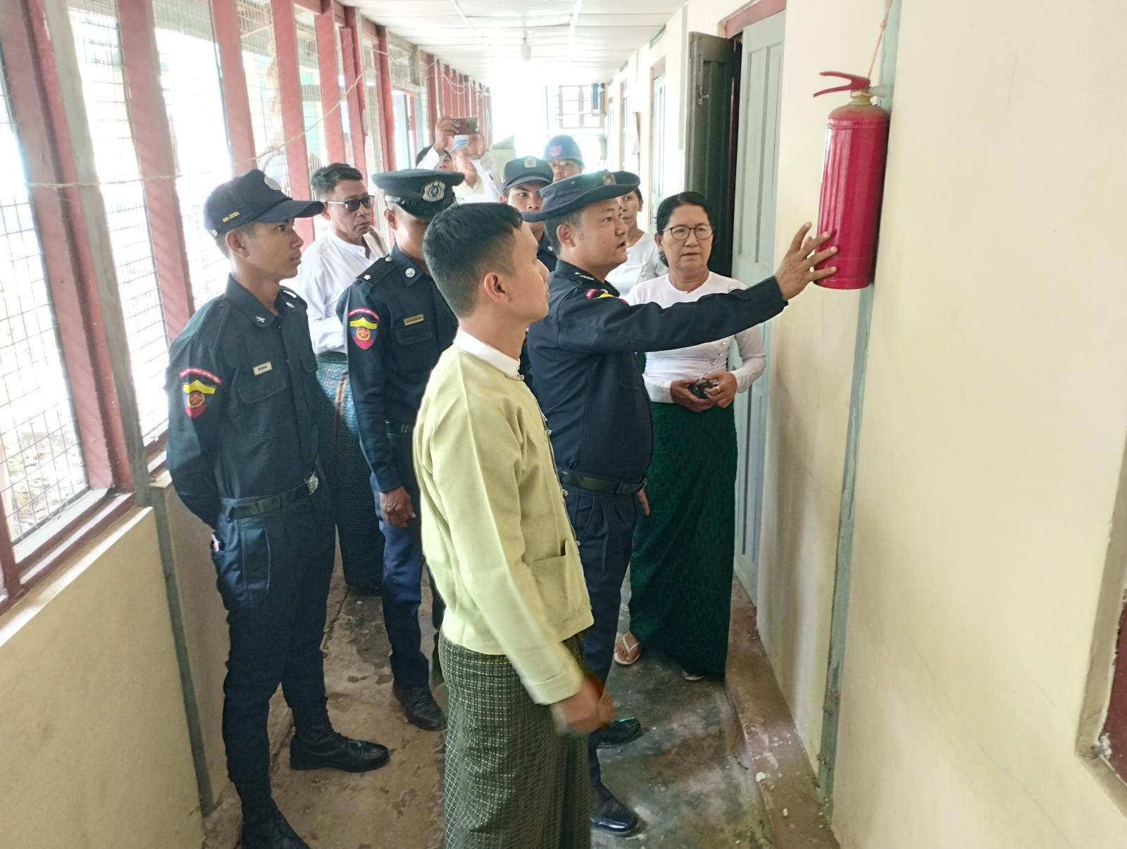 အဆိုပါ ကွင်းဆင်းစစ်ဆေးမှုအား မြို့နယ်စီမံအုပ်ချုပ်ရေးအဖွဲ့ဥက္ကဋ္ဌ ဦးတိုးတိုးဝင်း၏ ကြီးကြပ်မှုဖြင့် မြို့နယ် အထွေထွေအုပ်ချုပ်ရေးဦးစီးဌာန ဒုတိယဦးစီးမှူး ဦးသီဟကိုကိုနှင့် ဝန်ထမ်းများ၊ မြို့နယ်မီးသတ်ဦးစီးမှူး ဦးဇော်မျိုးဌေးနှင့် အဖွဲ့ဝင်များ၊ မြို့နယ်ပညာရေးမှူးရုံးမှ လက်ထောက်ညွှန်ကြားရေးမှူး ဦးမြင့်ဌေးနှင့် ဝန်ထမ်းများ၊ မြို့နယ်လျှပ်စစ်အင်ဂျင်နီယာရုံးလိုင်းတာဝန်ခံ ဦးကြည်ခိုင်နှင့် မြို့နယ်ရဲတပ်ဖွဲ့မှူးရုံးမှ တာဝန်ရှိသူများမှ ကျောင်းဝင်းအတွင်း အမှိုက်များရှင်းလင်းထားရှိမှု၊ မီးသတ်ဆေးဘူးများထားရှိမှု၊ မီးသတ်ရေကန်နှင့် မီးချိတ်၊ မီးကတ်များ အသင့်ဆောင်ရွက်ထားရှိမှု၊ သွယ်တန်းထားသော လျှပ်စစ်မီးကြိုးများ၊ မီးခလုတ်များ ကောင်းမွန်ခြင်းရှိ/မရှိတို့အား စစ်ဆေးပြီး လိုအပ်သည်များအား မှာကြားဆွေးနွေးခဲ့ကြကြောင်း သိရသည်။
