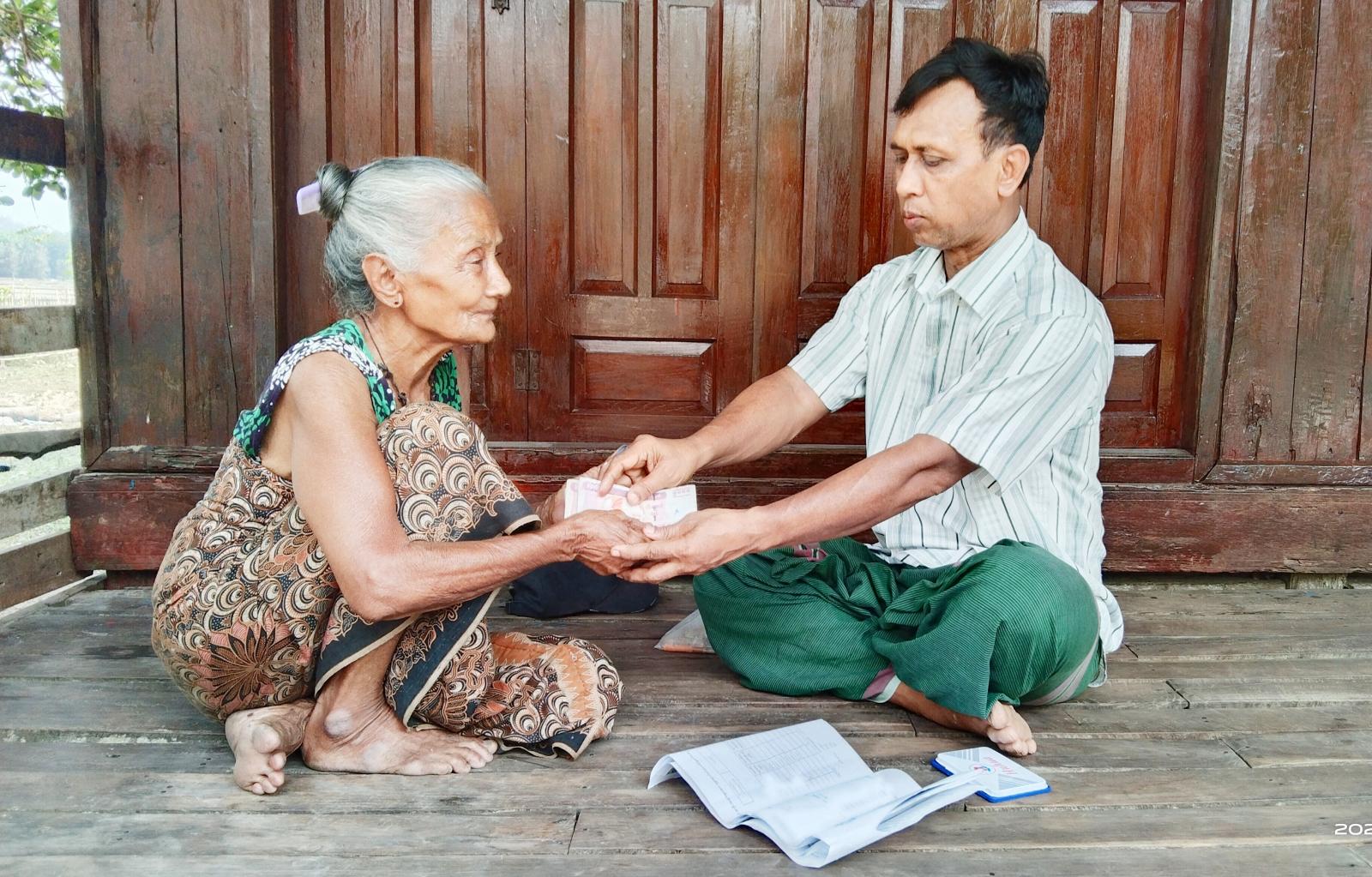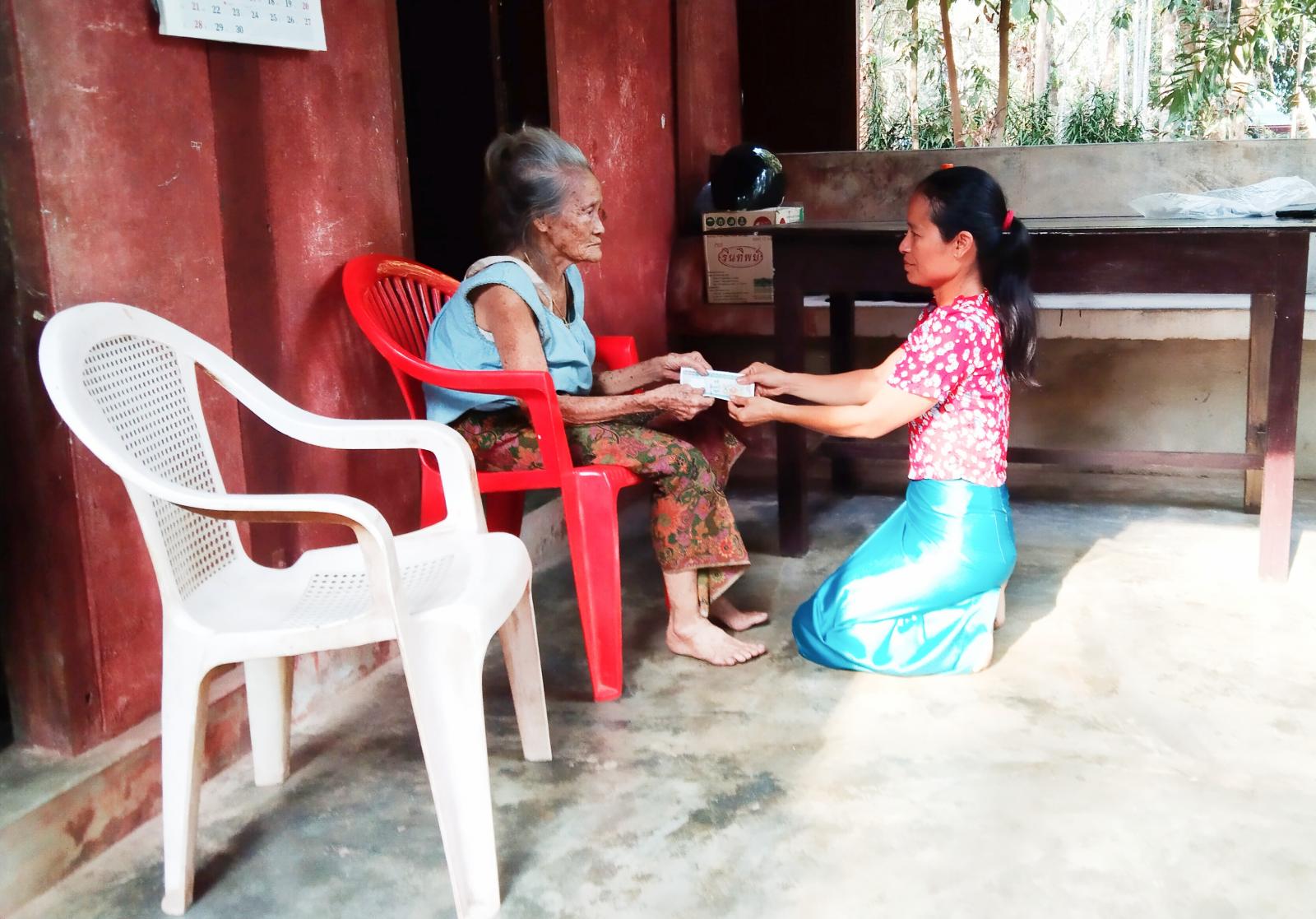 အဆိုပါ ထောက်ပံ့ငွေများ ပေးအပ်ရာတွင် မိုးနိုင်းကျေးရွာအုပ်စုမှ သက်ကြီးဘိုးဘွား(၂၈)ဦးအား တစ်ဦးလျှင် (၃၀၀၀ဝိ/-) နှုန်းဖြင့် စုစုပေါင်း ကျပ်ငွေ(၈၄၀၀၀ဝိ/-)တိတိကို သက်ဆိုင်ရာ ကျေးရွာမှ တာဝန်ရှိသူများတို့က လူမှုရေးပင်စင် ခံစားခွင့်ရှိသူ အဘိုးအဘွားများထံ လက်ဝယ် အရောက် ထောက်ပံ့ငွေများ ပေးအပ်ခဲ့ကြောင်း သိရသည်။