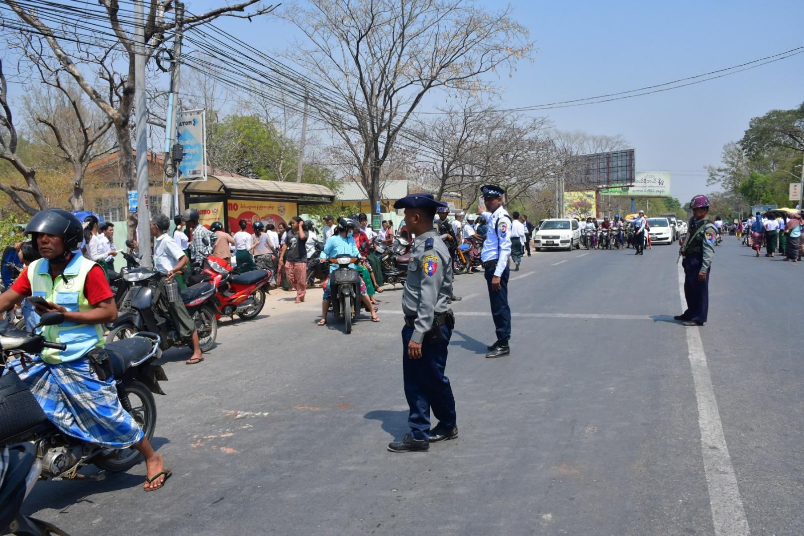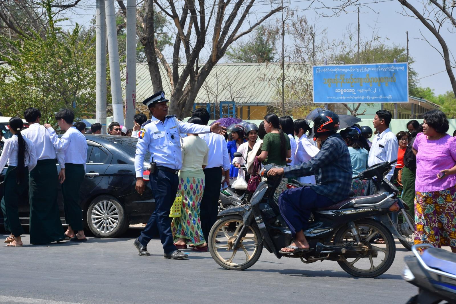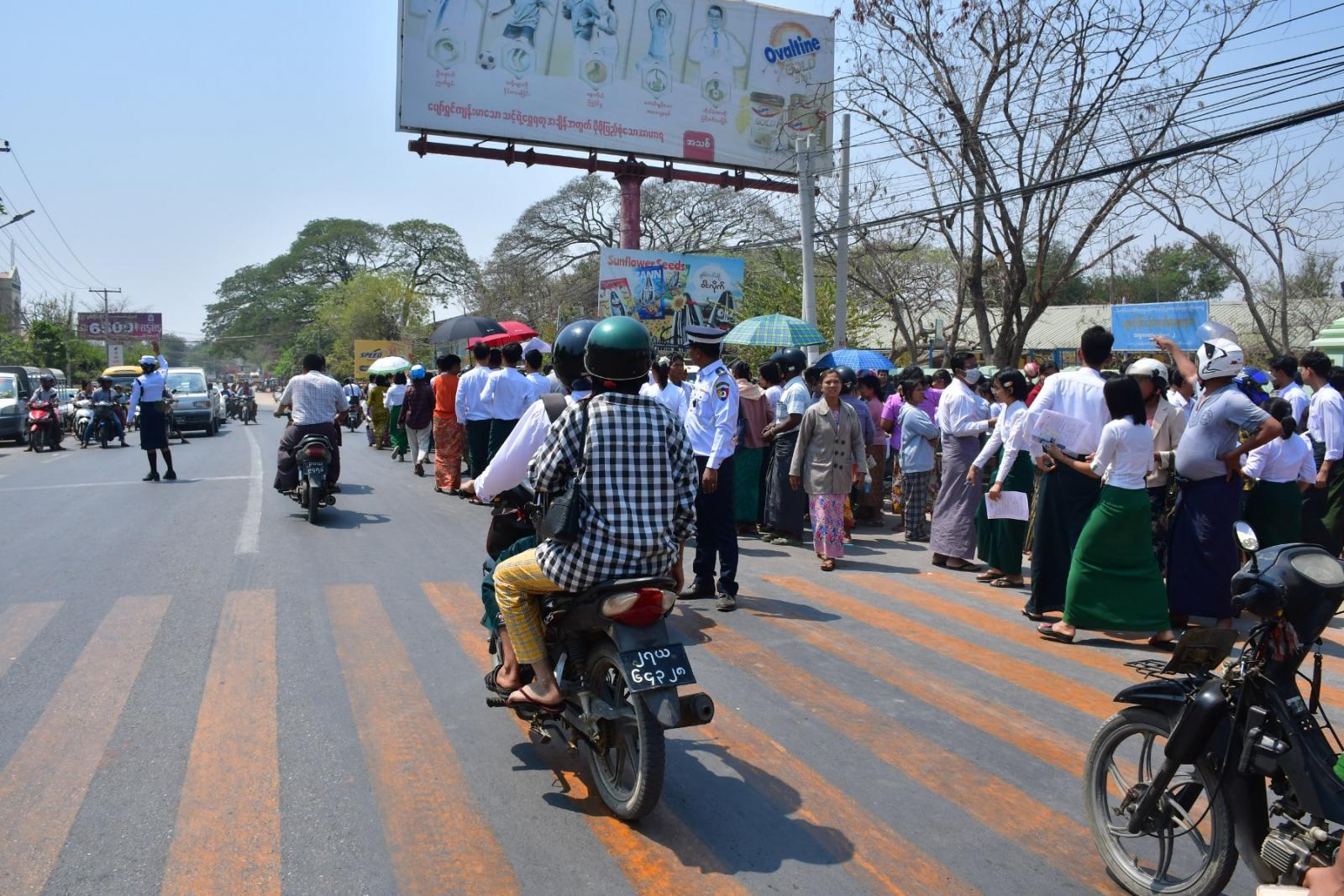 မန္တလေးတိုင်းဒေသကြီး မိတ္ထီလာမြို့၌ တက္ကသိုလ်ဝင်တန်း စာမေးပွဲ ဝင်ရောက်ဖြေဆိုသည့် ကျောင်းသူ/ကျောင်းသားများ ယာဉ်အန္တရာယ် ကင်းရှင်းစေရေးအတွက် အမှတ် (၉၆) ယာဉ်ထိန်း ရဲတပ်ဖွဲ့ စု (မိတ္ထီလာ)မှ ယာဉ်ထိန်းရဲတပ်ဖွဲ့စုမှူးနှင့် တပ်ဖွဲ့ဝင်များက နေ့စဉ် ဆောင်ရွက်ပေး လျက်ရှိကြောင်း သိရသည်။