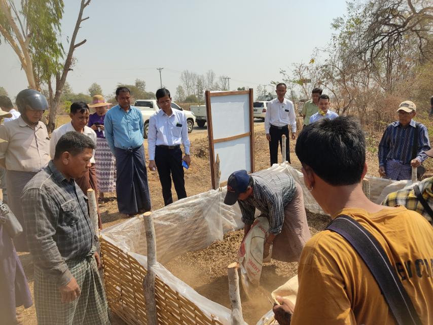 ဆက်လက်ပြီး ဒုတိဝန်ကြီးနှင့် တာဝန်ရှိသူများက ချောင်းကောက်ကျေးရွာရှိ အသင်းသား ဦးသောင်းရွှေ၏နှမ်းရိုးဖြင့် သဘာဝမြေဩဇာပြုလုပ်နေမှုအဆင့်ဆင့်အား ကြည့်ရှု့ခဲ့ပြီး လိုအပ်သည်များကို လမ်းညွှန်မှာကြားခဲ့ကြောင်း သိရသည်။