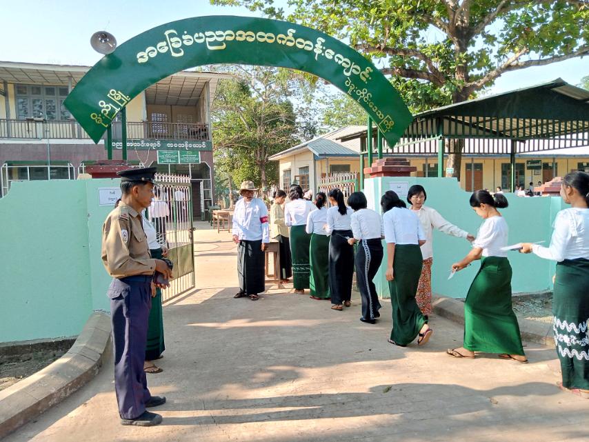 ၂၀၂၃ -၂ ၀၂၄ ပညာသင်နှစ်၊ တက္ကသိုလ်ဝင်စာမေးပွဲကို နိုင်ငံတစ်ဝှမ်း မတ်လ ၁၁ ရက်နေ့မှ စတင်ဖြေဆိုလျက်ရှိရာ ယနေ့နံနက် ၉ နာရီအချိန်က ပဲခူးတိုင်းဒေသကြီး၊ သာယာဝတီခရိုင်၊ မိုးညိုမြို့နယ်တွင် ကျောင်းသား၊ ကျောင်းသူများ အင်္ဂလိပ်စာဘာသာရပ် (ဒုတိယနေ့) အား အေးချမ်းစွာဆက်လက်ဖြေဆိုလျက်ရှိကြောင်း သိရသည်။