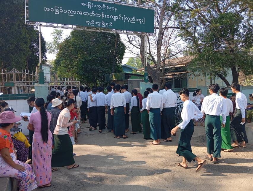 ၂၀၂၄ ခုနှစ် တက္ကသိုလ်ဝင်စာမေးပွဲများကို မြန်မာတစ်နိုင်ငံလုံးတွင် ကျင်းပလျက်ရှိရာ ရန်ကုန်တိုင်းဒေသကြီး၊ လှည်းကူးခရိုင်၊ လှည်းကူးမြို့နယ်တွင် ၂၀၂၄ ခုနှစ်၊ တက္ကသိုလ်ဝင်စာမေးပွဲ (ဒုတိယနေ့) အင်္ဂလိပ်စာဘာသာရပ်ကို ယနေ့နံနက် ၉ နာရီအချိန်က လှည်းကူးမြို့နယ်အတွင်းရှိ စာစစ်ဌာန (၇) ခုတွင် အေးချမ်းစွာ ဆက်လက်ဖြေဆိုလျက်ရှိသည်။