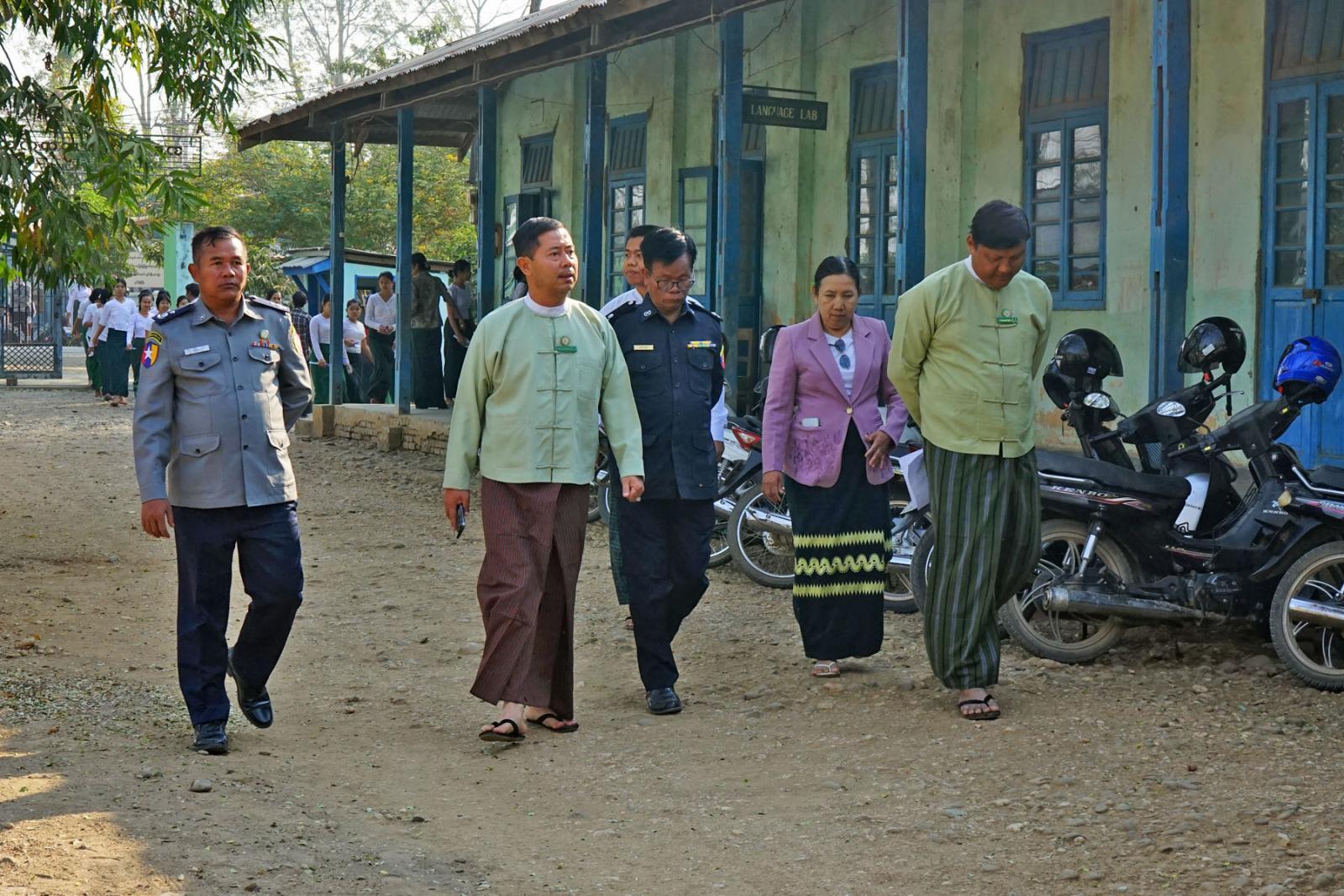 ထိုသို့ကြည့်ရှုစစ်ဆေးရာတွင် မင်းဘူးခရိုင်စီမံအုပ်ချုပ်ရေးအဖွဲ့ဥက္ကဋ္ဌ ဦးထွန်းထွန်းဝင်းနှင့် အဖွဲ့ဝင်များ၊ ပွင့်ဖြူမြို့နယ်စီမံအုပ်ချုပ်ရေးအဖွဲ့ဥက္ကဋ္ဌ ဦးအောင်မြတ်ခိုင်နှင့် အဖွဲ့ဝင်များက ပွင့်ဖြူမြိုနယ်ရှိ အခြေခံပညာအထက်တန်းကျောင်းနှင့် ကုန်းဇောင်းမြို့ရှိ အခြေခံပညာအထက်တန်းကျောင်း စာစစ်ဌာနနှစ်ခု၌ ကျောင်းသား/ကျောင်းသူများ အေးချမ်းစွာဖြေဆိုနေမှုကို ဦးစွာကြည့်ရှုစစ်ဆေးပြီး စာပေးပွဲဖြေဆိုရာ၌ အတွင်းစည်း၊ အပြင်စည်းဖြင့် ဝိုင်းဝန်းကူညီဆောင်ရွက်ပေးနေသော ပညာရေးဝန်ထမ်းများ၊ ဌာနဆိုင်ရာဝန်ထမ်းများ၊ လုံခြုံရေးတပ်ဖွဲ့ဝင်များ၊ ယာဉ်ထိန်းရဲတပ်ဖွဲ့ဝင်များ၊ ကျန်းမာရေးဝန်ထမ်းများ၊ ကြက်ခြေနီတပ်ဖွဲ့ဝင်များ၊ မီးသတ်တပ်ဖွဲ့ဝင်များနှင့် ရပ်မိရပ်ဖများအား ရင်းရင်းနှီးနှီးတွေ့ဆုံနှုတ်ဆက်၍ အားပေးစကားပြောကြားကာ လိုအပ်သည်များကို ပေါင်းစပ်ညှိနှိုင်း ဖြည့်ဆည်းဆောင်ရွက်ပေးခဲ့ကြောင်း သိရသည်။
