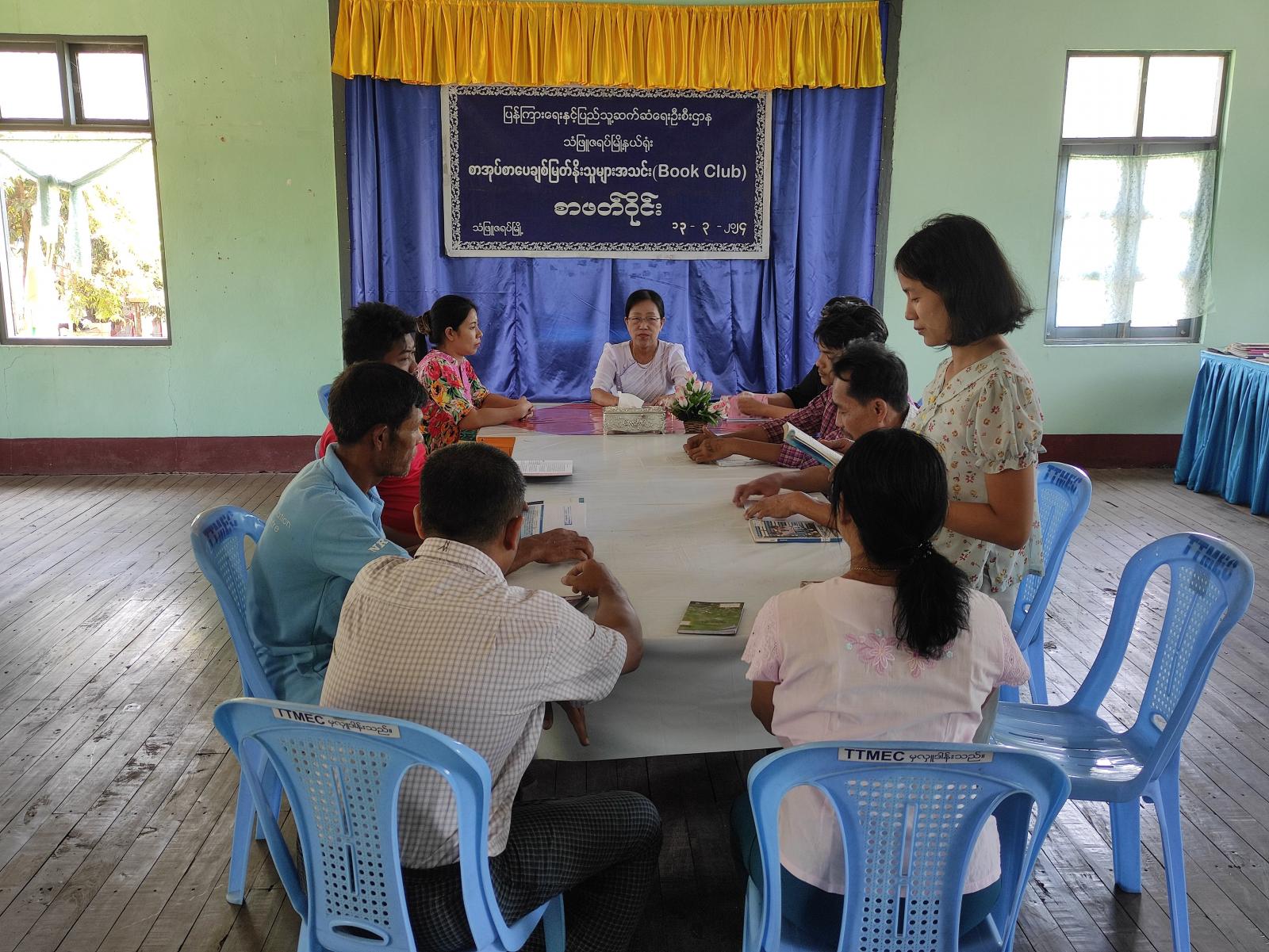 ဦးစွာ မြို့နယ်ပြန်ကြားရေးနှင့်ပြည်သူ့ဆက်ဆံရေးဦးစီးဌာန ဦးစီးအရာရှိဒေါ်အေးအေးသီက စာပေဖတ်ရှုသည့် အလေ့အထကောင်းများရရှိစေရန်ရည်ရွယ်၍ စာဖတ်ဝိုင်းပြုလုပ်ရခြင်းဖြစ်ကြောင်း ရှင်းလင်းပြောကြားသည်။