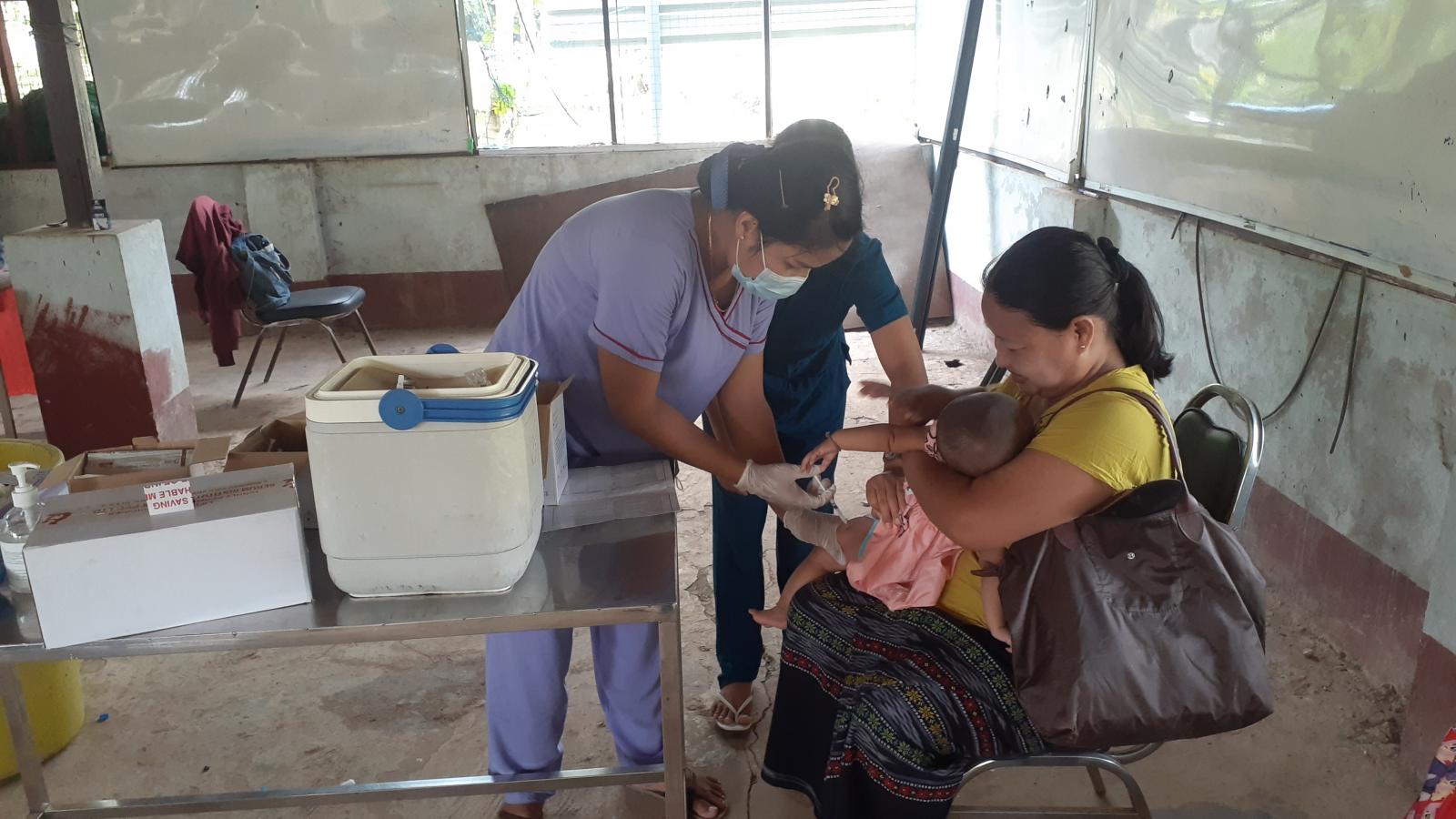 အဆိုပါ ပုံမှန်ကာကွယ်ဆေးထိုးနှံတိုက်ကျွေးခြင်းကို မြို့နယ်ပြည်သူ့ကျန်းမာရေးဦးစီးဌာန ကျန်းမာရေး ဝန်ထမ်းများက မွေးစမှအသက်(၁)နှစ်ခွဲအောက် ကလေးငယ်များအား ဆုံဆို့နာ၊ ကြက်ညှာချောင်းဆိုး၊ မေးခိုင်ရောဂါ၊ အသည်းရောင်အသားဝါဘီရောဂါနှင့် ဦးနှောက် အမြှေးရောင် ရောဂါ၊ ပိုလိုယို ရောဂါများကို ကာကွယ်နိုင်ရန်အတွက် ကာကွယ်ဆေးထိုးနှံခြင်း/တိုက်ကျွေးခြင်း၊ ဆောင်ရန်/ရှောင်ရန်များကို ကလေးမိဘများအား အသိပညာပေးခြင်းနှင့် ကိုယ်ဝန်ဆောင်မိခင်များအား ကိုယ်ဝန်ဆောင်ကာလအတွင်း အာဟာရပြည့်ဝစွာ ရရှိစေရန်အတွက် စားသင့်သည့်အစားများကို အသိပညာပေးခြင်းနှင့် ကာကွယ်ဆေးထိုးနှံခြင်းတို့ကို ဆောင်ရွက် ခဲ့ကြောင်း သိရှိရသည်။