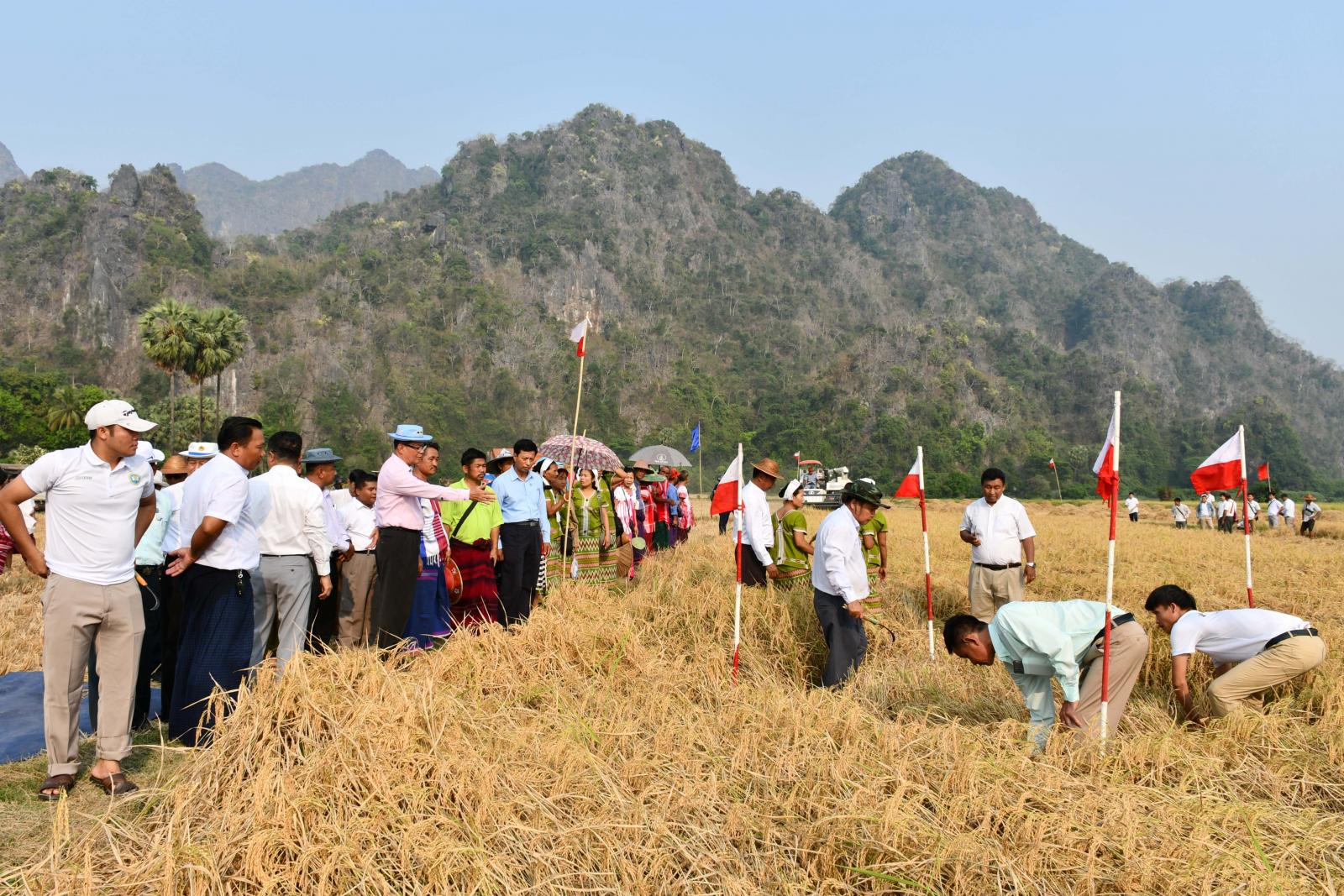 စိုက်ပျိုးရေး၊မွေးမြူရေးနှင့်ဆည်မြောင်းဝန်ကြီးဌာန၊ ကရင်ပြည်နယ် လယ်ယာမြေစီမံခန့်ခွဲရေးနှင့်စာရင်းအင်းဦးစီးဌာနမှ ကြီးမှူး၍ ကရင် ပြည်နယ်နွေစပါးစံကွက်ရိတ်သိမ်းပွဲကို မတ်လ ၁၈ ရက်နေ့ မွန်းလွဲ ၃ နာရီခန့်က ဘားအံမြို့နယ်၊ ရဲသာကျေးရွာအုပ်စု၊ နောင်ခရိုင်ကျေးရွာ ကွင်းအမှတ် ၁၁၈၈/က၊ နောင်ခရိုင်ကွင်းရှိ တောင်သူဦးမြင့်ဦး၏ ဆင်းသုခနွေစပါးစိုက်ခင်း၌ ကျင်းပရာ ကရင်ပြည်နယ်ဝန်ကြီးချုပ်ဦးစောမြင့်ဦးက စိုက်ပျိုးရေးကိုအခြေခံပြီး အခြားစီးပွားရေးကဏ္ဍများကိုလည်း ဘက်စုံဖွံ့ဖြိုးတိုးတက်အောင် ဆောင်ရွက်လျက်ရှိရာ တောင်သူ လယ်သမားများ လူနေမှုဘဝသာယာမြင့်မားတိုးတက်ရေး၊ လယ်ယာထွက်ကုန်သီးနှံများ အထွက်နှုန်းမြင့်မားရေး၊ ဈေးကွက်ဝင်သီးနှံများနှင့် အဓိကသီးနှံများဈေးကောင်းရရှိရေးတို့ကို စဉ်ဆက်မပြတ်အကောင်အထည်ဖော်ဆောင်ရွက်လျက်ရှိကြောင်း၊ အထွက်နှုန်းမှန်ကန်ရေးအတွက်စံကွက်ရိတ်သိမ်းခြင်းနှင့် တောင်သူများအားအထွက်နှုန်း မေးမြန်းစုံစမ်းလာသည့်အခါ တောင်သူများမှ ပူးပေါင်းပါဝင်ကူညီဆောင်ရွက်ပေးကြစေလိုကြောင်း၊ စိုက်ပျိုးရေးကဏ္ဍမြင့်မားလာအောင် ဝိုင်းဝန်းကြိုးပမ်းဆောင်ရွက်ခြင်းဖြင့် တောင်သူလယ်သမားများ ၏လူနေမှုဘဝတိုးတက်မြင့်မားပြီး စီးပွားရေးကဏ္ဍဖွံ့ဖြိုးတိုးတက်လာမည်ဖြစ်ကြောင်း ပြောကြားသည်။