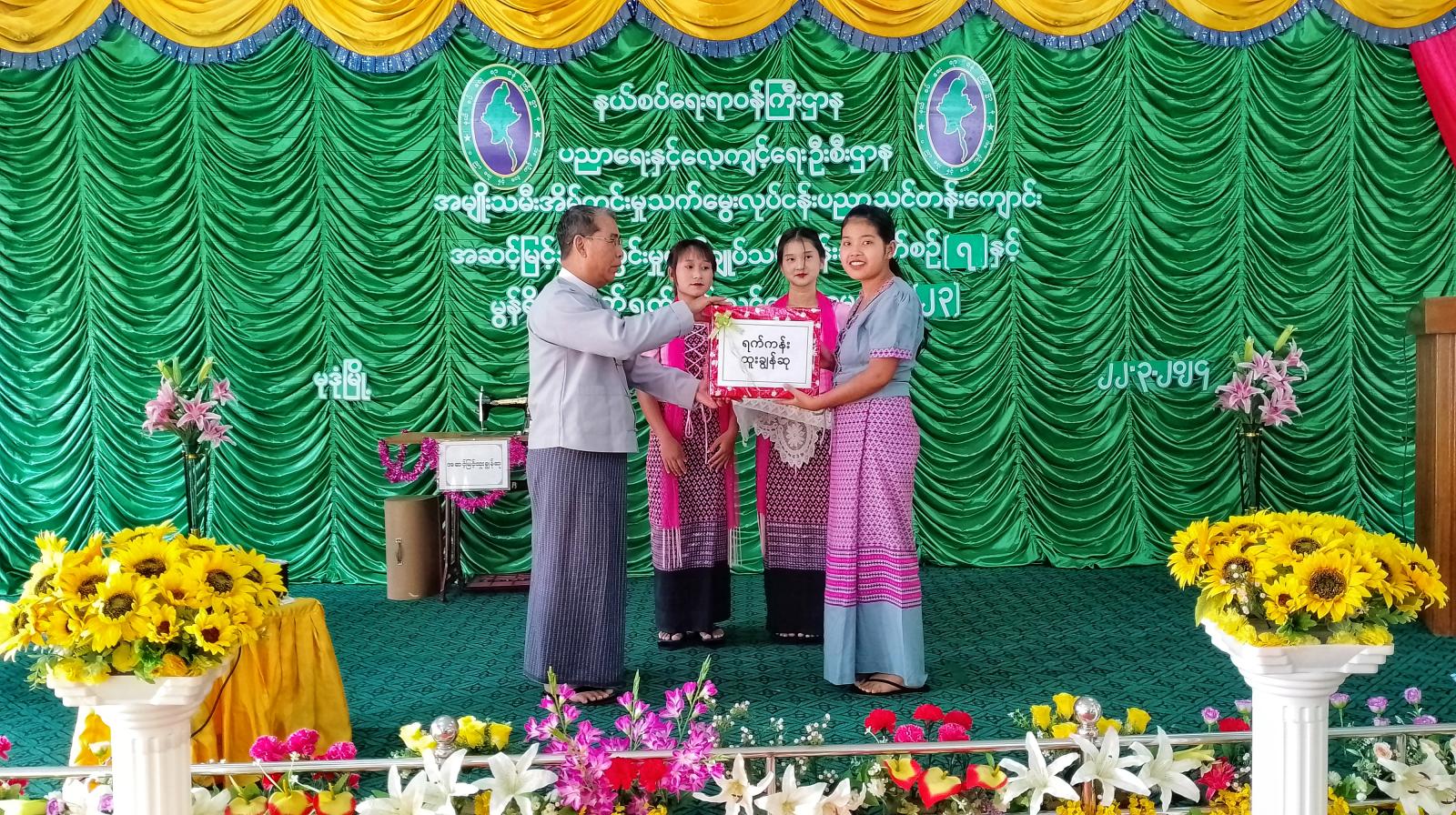 ထို့နောက် ပြည်နယ်အစိုးအဖွဲ့ဝင်ဝန်ကြီးများက သင်တန်းတွင် ထူးချွန်ဆုရရှိသူများနှင့် သင်တန်းဆင်းအောင်လက်မှတ်များကိုပေးအပ်၍ သင်တန်းသူတစ်ဦးမှ ကျေးဇူးတင်စကားပြောကြားခဲ့ပြီး ကျောင်းအုပ်ဆရာမကြီးမှ သက်တန်းကျောင်းဆိုင်ရာအချက်အလက်များ ရှင်းလင်းတင်ပြခဲ့သည်။