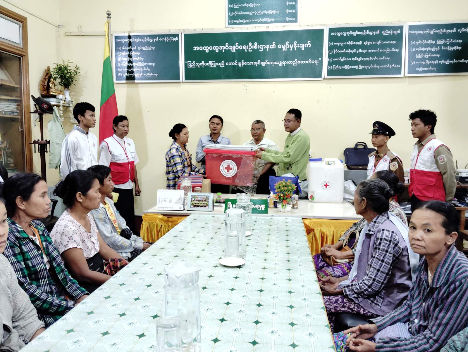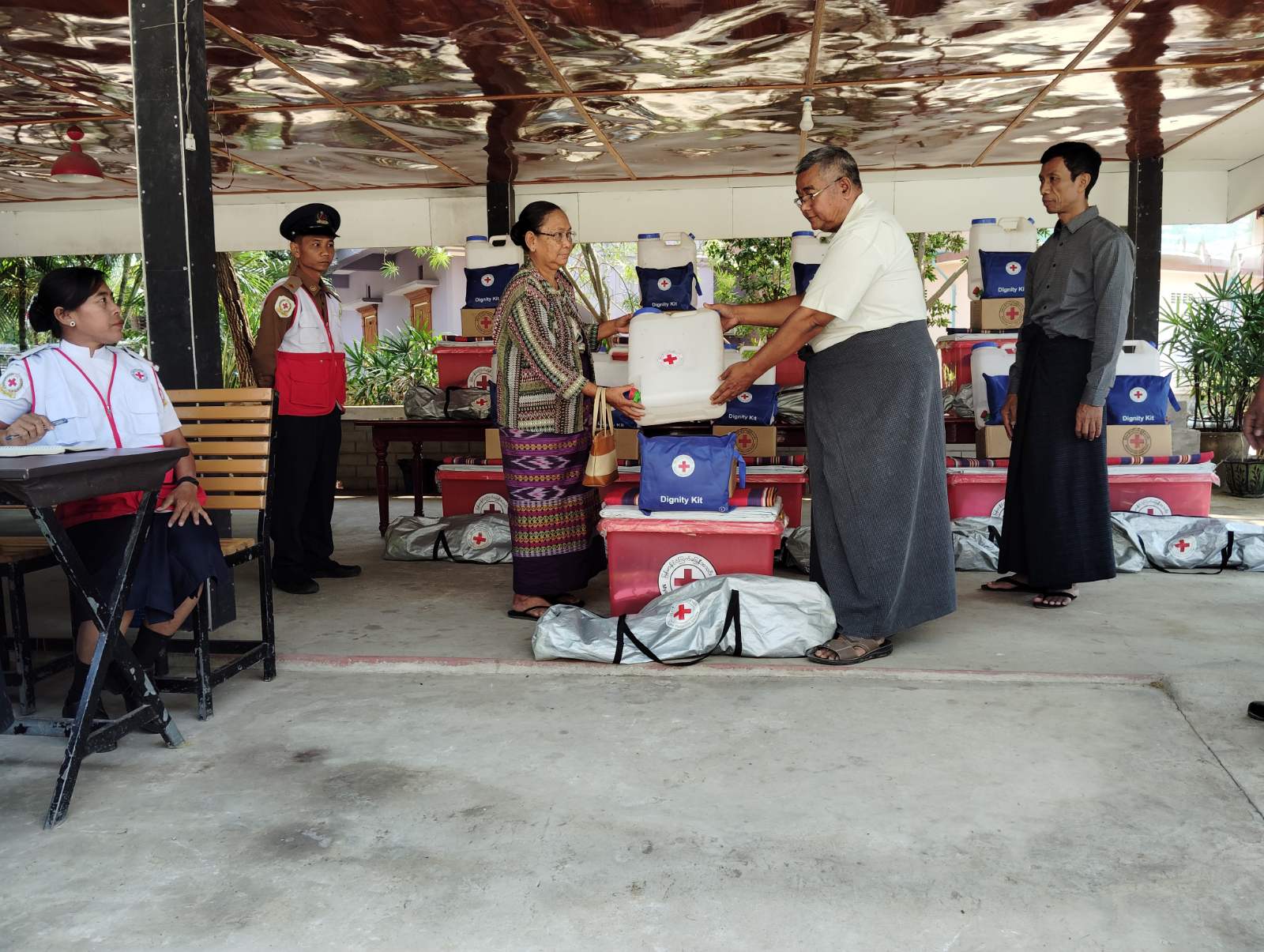 ထိုသို့ထောက်ပံ့ပေးအပ်ရာတွင် တိုင်းဒေသကြီးကြက်ခြေနီအသင်းမှ မီးဘေးသင့်အိမ်ထောင်စု (၁၁)စု အတွက် ကယ်ဆယ်ရေးပစ္စည်း(၇)မျိုး (မိသားစုအသုံးအဆောင်၊ တစ်ကိုယ်ရည်သုံး သန့်ရှင်းရေးပစ္စည်း၊ အိုးခွက်ပန်းကန်၊ ရေပုံး၊ မိုးကာ၊ တောင်သူသုံးပစ္စည်း၊ အမျိုးသမီးတစ်ကိုယ်ရည်သုံး သန့်ရှင်းရေးပစ္စည်း) တို့ကို မြို့နယ်အုပ်ချုပ်ရေးမှူး ဦးကျော်ဝင်းစိန်၊ ခရိုင်ကြက်ခြေနီကြီးကြပ်မှုကော်မတီဉက္က ဦးမြင့်ကြည်၊ မြို့နယ်ကြက်ခြေနီကြီးကြပ်မှုကော်မတီ ဉက္က ဦးမြင့်ဟန်နှင့် တာဝန်ရှိသူများက မီးဘေးသင့်အိမ်ထောင်စု များ လက်ဝယ်အရောက် ထောက်ပံ့လှူဒါန်းပေးခဲ့ကြောင်း သိရသည်။
