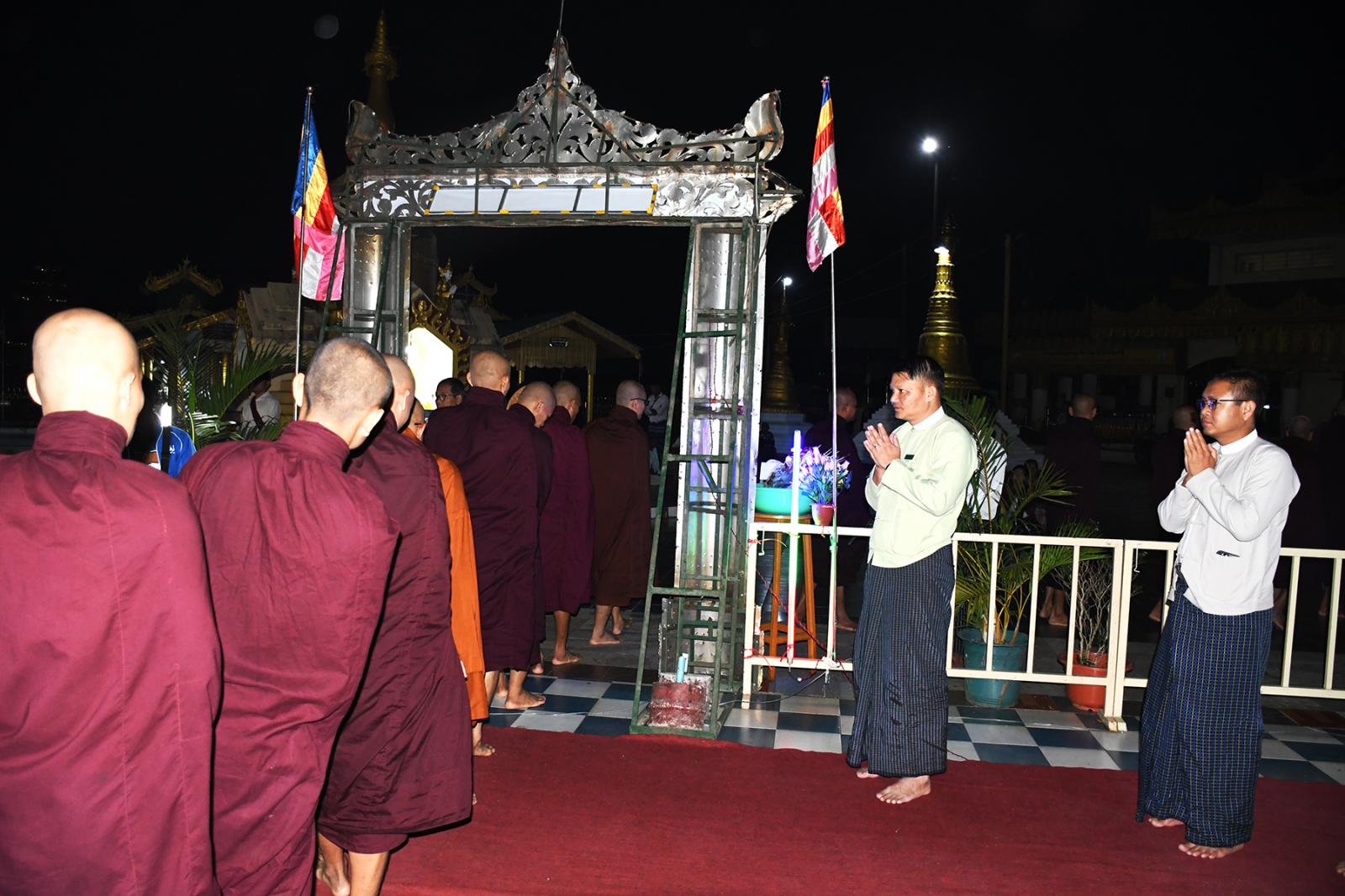 ထို့နောက် ခရိုင်နှင့်မြို့နယ် ဌာနဆိုင်ရာများ၊ စေတီတော်ဘဏ္ဍာတော်ထိန်း ဂေါပကအဖွဲ့နှင့် အလှူရှင်များစုပေါင်းကာ ကြွရောက်လာကြသည့် ကျောင်းတိုက် အသီးသီးမှ ဆရာတော်၊ သံဃာတော် အရှင်သူမြတ်များအား ဆွမ်းဆန်စိမ်းနှင့် လှူဖွယ်ဝတ္ထုပစ္စည်းများ တပျော်တပါးလောင်းလှူခဲ့ကြကြောင်း သိရသည်။
