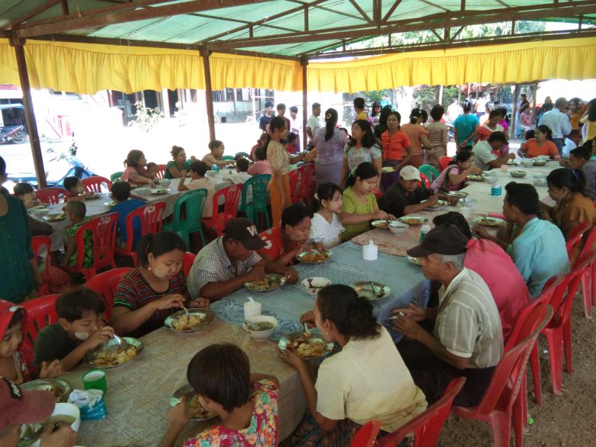 ထို့နောက် ဘီးလင်းမြို့နယ်အတွင်းရှိ အလှူရှင်များက စုပေါင်း၍ ကြွရောက်လာကြသည့် ကျောင်းတိုက်အသီးသီးမှ ဆရာတော်၊ သံဃာတော် အရှင်သူမြတ်များအား ဆွမ်းဆန်စိမ်းနှင့် လှူဖွယ်ဝတ္ထုပစ္စည်းများ တပျော်တပါး လောင်းလှူခဲ့ကြပြီး ဧည့်ပရိသတ်များအား စတုဒီသာ ဒံပေါက်ထမင်းများဖြင့် ကျွေးမွေးလှူဒါန်းခဲ့ကြကြောင်း သိရသည်။