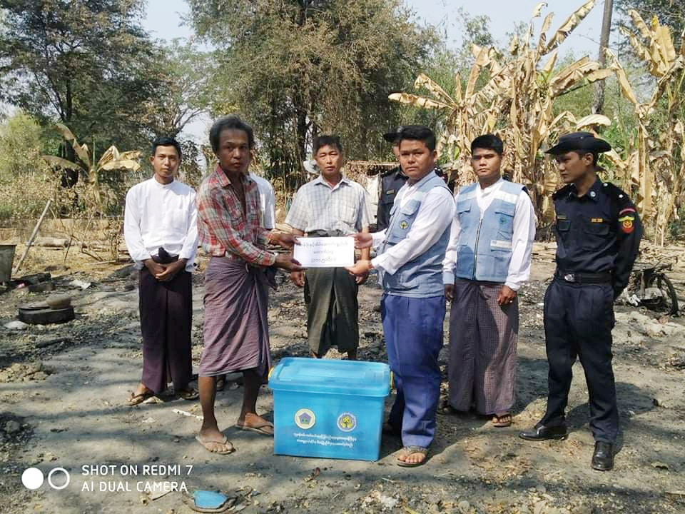 မီးဘေးသင့်အိမ်ထောင်စုအား ထောက်ပံ့ငွေနှင့် ပစ္စည်းများ အိမ်တိုင်ရာ‌‌ရောက် ထောက်ပံ့ပေးအပ်