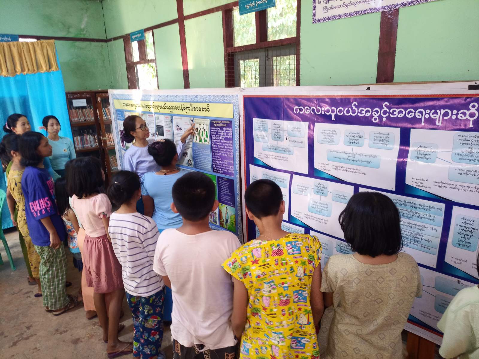 ထို့နောက် ပြန်ကြားရေးနှင့်ပြည်သူ့ဆက်ဆံရေးဦးစီးဌာနမှ ပြသထားသော ကလေးသူငယ်အခွင့် အရေးများဆိုင်ရာ ဥပဒေများနှင့် ကလေးအလုပ်သမား ပပျောက်ရေး အသိပညာပေး နံရံကပ် စာစောင်များကို ကျောင်းသား၊ ကျောင်းသူများက စိတ်ပါဝင်စားစွာ လေ့လာကြည့်ရှုခဲ့ပြီး ကျောင်းသား၊ ကျောင်းသူများ ကလေးသူငယ် အခွင့်အရေးနှင့် ပတ်သက်၍ သိရှိလိုသော အကြောင်းအရာများကို အမျိုးသမီးရေးရာ အဖွဲ့နှင့် မြို့နယ်မိခင်နှင့်ကလေးစောင့်ရှောက်ရေး အသင်းတို့က ပြန်လည်ရှင်းပြခဲ့ကြောင်း သိရသည်။