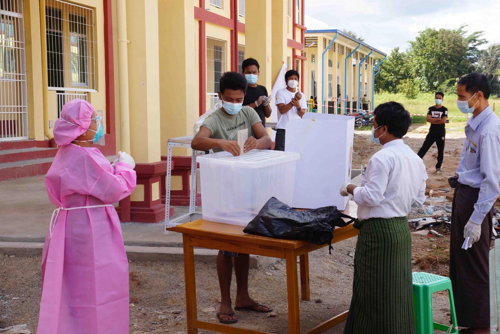 ကယားပြည်နယ်၊ လွိုင်ကော်မြို့နယ်အတွင်း Community Based Facility Quarantine နေရာများဖြစ်သည့် လွိုင်ကော်တက္ကသိုလ်၊ လွိုင်ကော်ပညာရေးကောလိပ်၊ သာသနာ့ဗိမာန် တော်၊ နတလလူငယ်သင် တန်းကျောင်း၊ သူနာပြု/သားဖွားသင်တန်းကျောင်းများတွင် Facility Quarantine ဝင်ရောက်နေသော ရပ်ကွက်၊ ကျေးရွာ ပြည်သူများအနေဖြင့် ကြိုတင်ဆန္ဒမဲပေးခြင်းများ ဆောင်ရွက်ပေးရာတွင် ကိုဗစ်-၁၉ ရောဂါ ကူးစက်မှုမရှိစေရေး ကျန်းမာရေးနှင့်အားကစားဝန်ကြီးဌာနမှ ထုတ်ပြန်ထားသော ညွှန်ကြား ချက်များနှင့်အညီ ဆန္ဒမဲပေးနိုင်ရေး ရပ်ကွက်၊ ကျေးရွာ ရွေးကောက်ပွဲကော်မရှင်အဖွဲ့ခွဲ အဖွဲ့ဝင်များက စနစ်တကျ စီစဉ်ပေးလျက်ရှိကြောင်း သတင်းရရှိသည်။