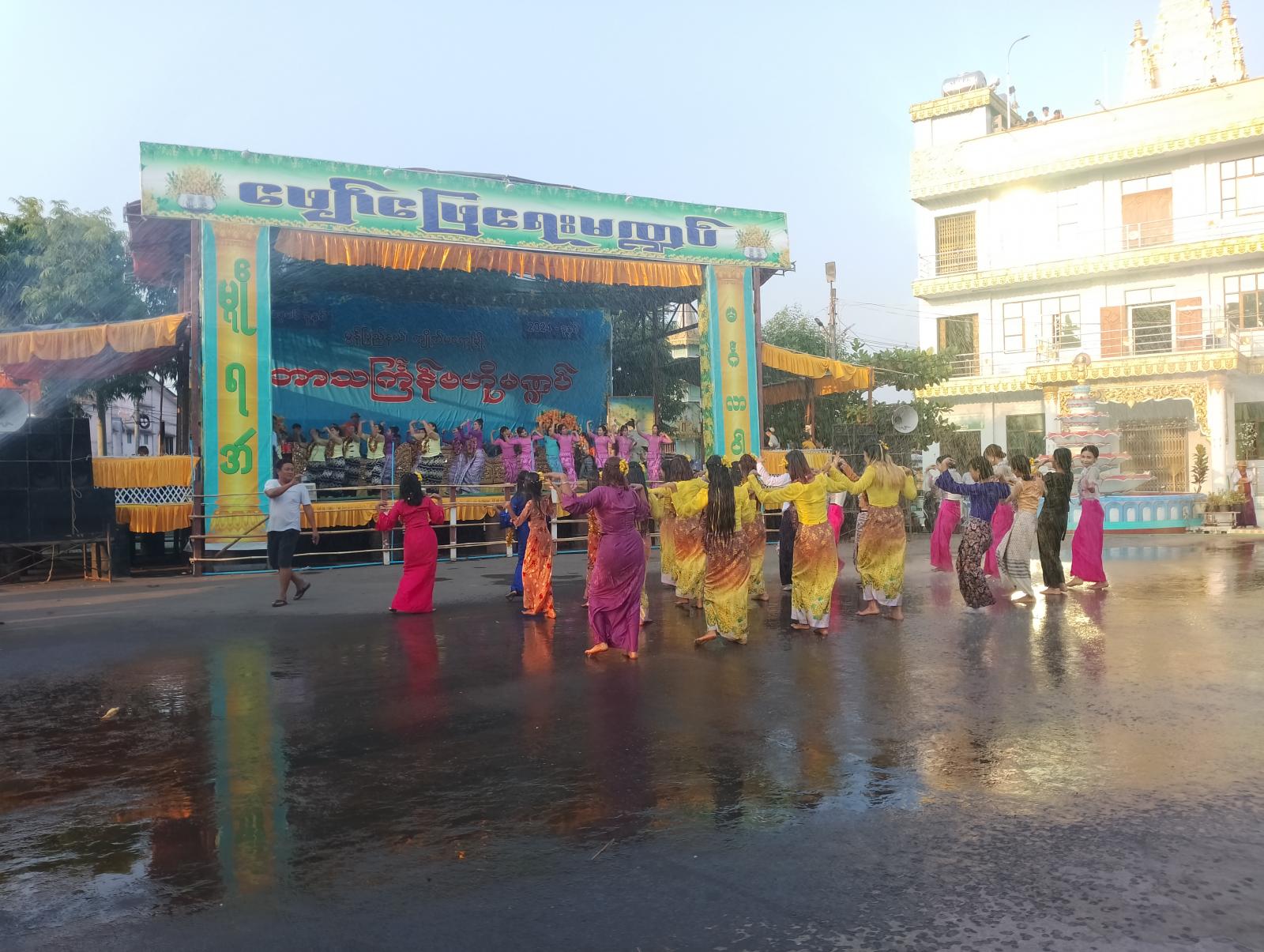 အခမ်းအနားတွင် မြို့နယ်စီမံအုပ်ချုပ်ရေးအဖွဲ့ဥက္ကဋ္ဌ ဦးကျော်စိုးဦးက သင်္ကြန်နှစ်သစ်ဦးအဖွင့်အမှာ စကားပြောကြားကာဗဟိုမဏ္ဍပ်ကို မြို့နယ်စီမံအုပ်ချုပ် ရေးအဖွဲ့ဝင်များက ဖဲကြိုးဖြတ်ဖွင့်လှစ်ပေးခဲ့ကြသည်။ ထို့နောက် သင်္ကြန်ယိမ်းအက အဖွဲ့များက မန်းတောင်ရိပ်ခို တေးသီချင်း ဖြင့်စုပေါင်းကပြဖျော်ဖြေခဲ့ကြကြောင်း သိရသည်။