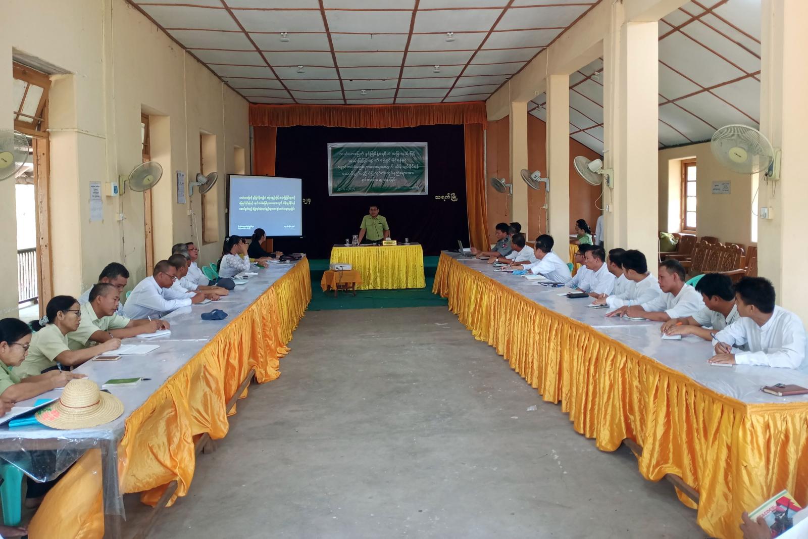 အဆိုပါ အခမ်းအနားတွင် မြို့နယ်စီမံအုပ်ချုပ်ရေးအဖွဲ့ဥက္ကဋ္ဌက အဖွင့်အမှာစကားပြောကြားပြီး မြို့နယ်မြေစာရင်းဦးစီးဌာန မြို့နယ်ဦးစီးမှူး ဦးမင်းနိုင်က လယ်ယာမြေကို ခွင့်ပြုချက်မရရှိဘဲ အခြားနည်းဖြင့်အသုံးပြုခြင်းများကို ဖြေရှင်းထိန်းချုပ်နိုင်ရန် ဆောင်ရွက်မည့် စံပြုလုပ်ထုံးလုပ်နည်းများ၊ မြေပြင်ကွင်းဆင်းစစ်ဆေးရေးအဖွဲ့များ၏ လုပ်ငန်းတာဝန် (၂၅)ချက်နှင့် စောင့်ကြည့်စိစစ်တင်ပြရေးအဖွဲ့များ၏ လုပ်ငန်းတာဝန် (၁၂)ချက်တို့ကို ရှင်းလင်းဆွေးနွေးခဲ့သည်။ ယင်းနောက် တက်ရောက်လာသူများ၏ ဆွေးနွေးခြင်းများကို တာဝန်ရှိသူများက ပြန်လည်ရှင်းလင်းခဲ့ကြောင်း သိရသည်။