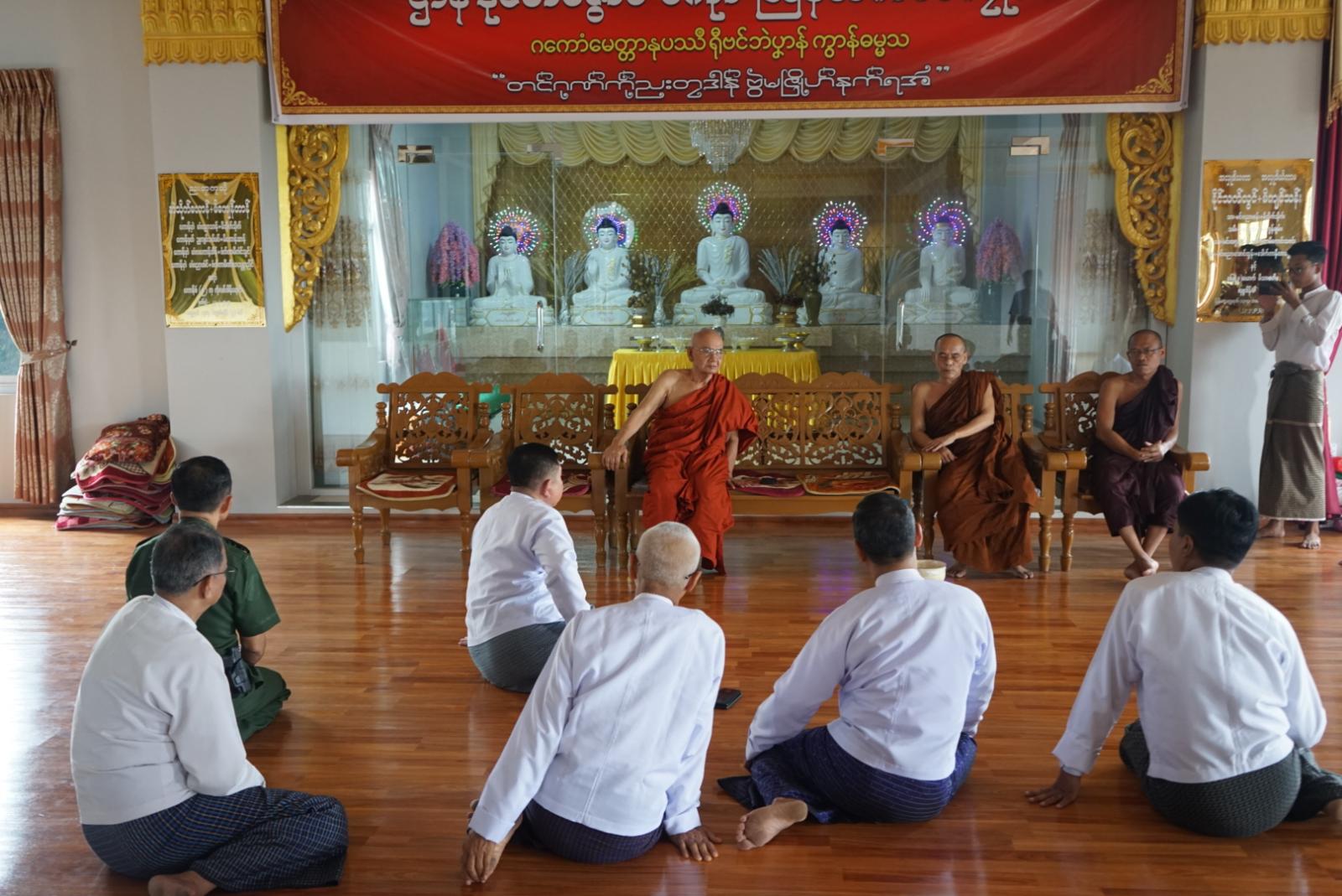 မွန်ပြည်နယ်၊ ကျိုက်မရောမြို့နယ်ရှိ ဓမ္မသကျေးရွာနှင့် အနီးပတ်ဝန်းကျင်ကျေးရွာများ၌ မတ်လ ၂၈ ရက်နေ့မှ စတင်၍ အကြမ်းဖက်သောင်းကျန်းသူများဝင်ရောက် ပစ်ခတ်တိုက်ခိုက်မှုများကြောင့် နေအိမ်များမီးလောင်ပျက်စီးခဲ့ရသော ကျေးရွာသူ၊ ကျေးရွာသားများအား ပြန်လည် ဝင်ရောက်နေထိုင်နိုင်ရေး ပြန်လည်ထူထောင်ရေးလုပ်ငန်းများကို ဒေသခံပြည်သူများနှင့်အတူ အမြန်ဆုံး ဆောင်ရွက်ပေးလျက်ရှိရာ မွန်ပြည်နယ် ဝန်ကြီးချုပ် ဦးအောင်ကြည်သိန်း၊ ပြည်နယ် အစိုးရအဖွဲ့ဝင်ဝန်ကြီးများနှင့် တာဝန်ရှိသူများသည် ယနေ့နံနက်ပိုင်းက မော်လမြိုင်မြို့၊ သာသနာ ၂၅၀၀ ကျောင်းတိုက်တော်သို့ ရောက်ရှိခဲ့ကြပြီး ရှေးဦးစွာ ပြည်နယ်ဝန်ကြီးချုပ်က ဆရာတော်ကြီးများကို ဖူးမြော်ကြည်ညို၍ သာသနာရေးဆိုင်ရာများ လျှောက်ထားခဲ့သည်။