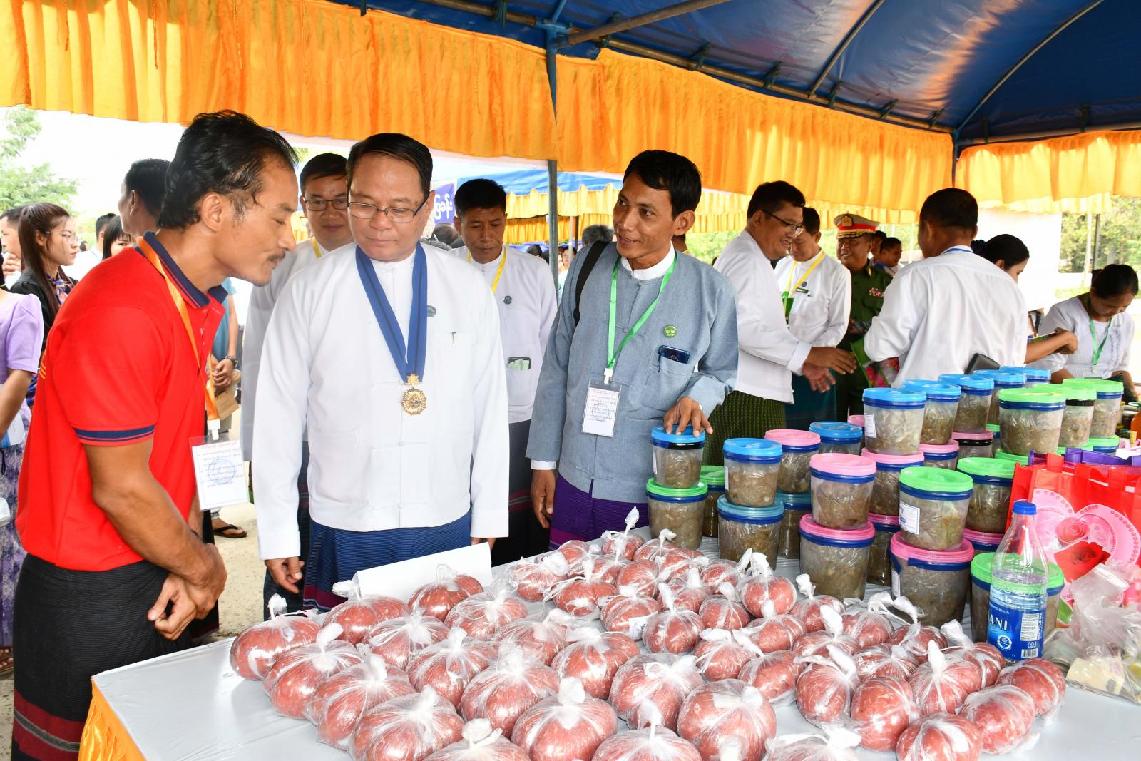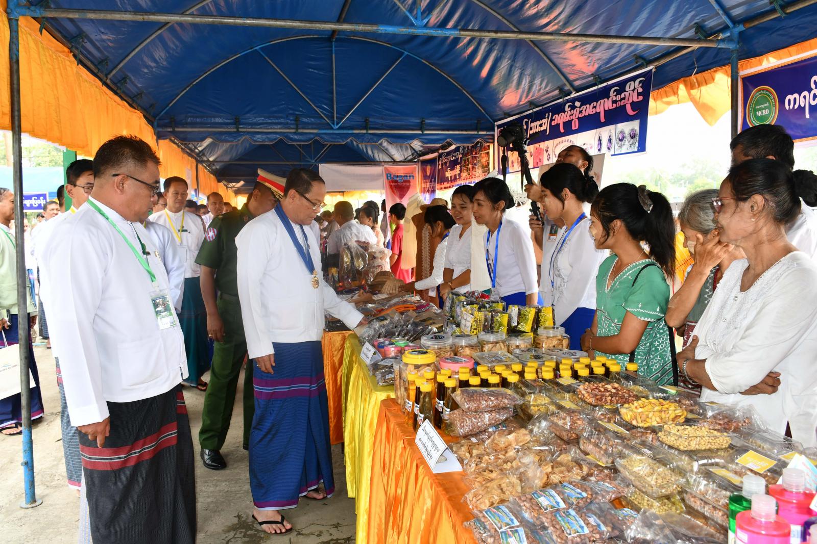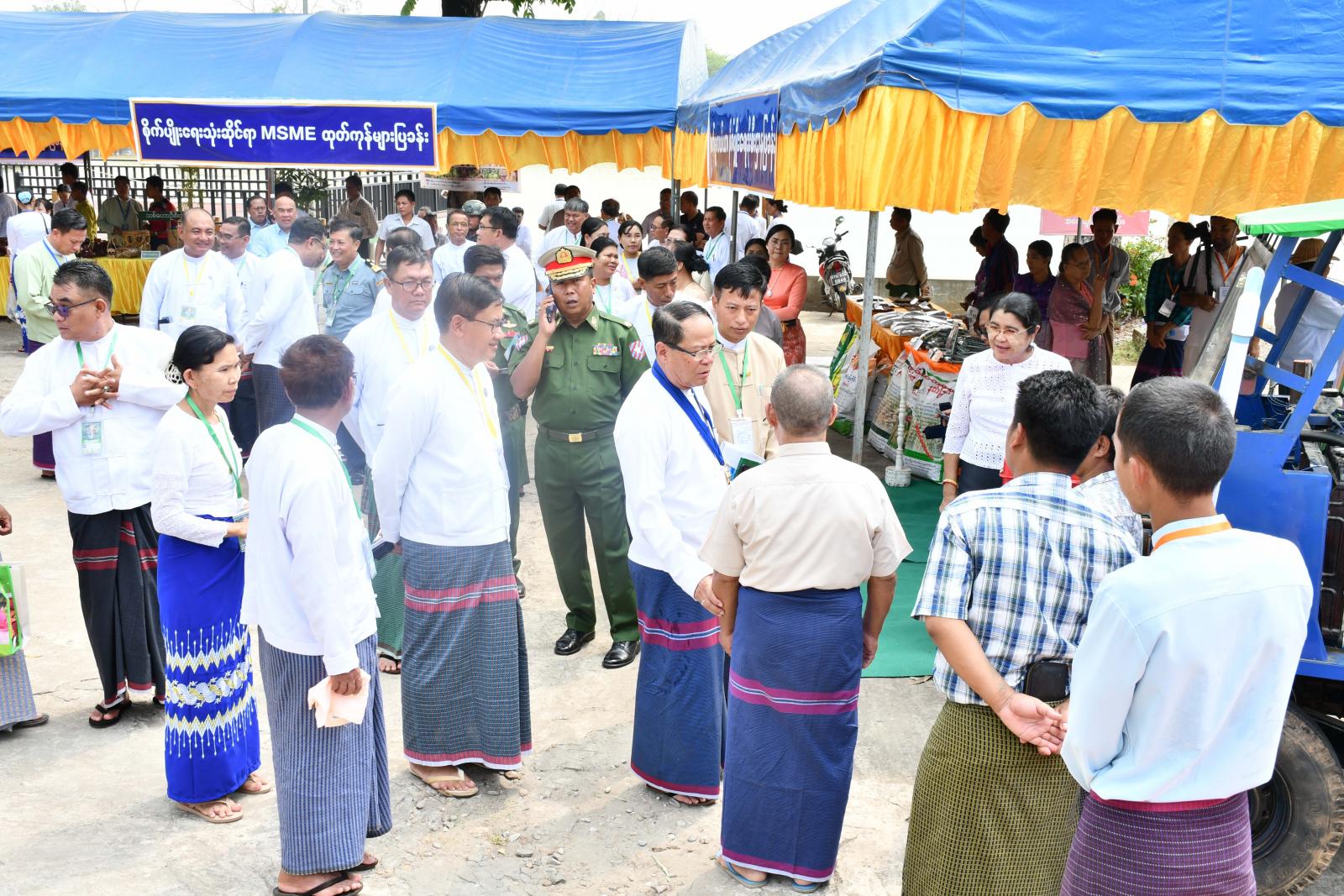 ဆက်လက်၍ ပြည်နယ်ဝန်ကြီးချုပ်နှင့်အဖွဲ့သည် ကရင်ပြည်နယ်အစိုးရအဖွဲ့မှကြီးမှူးကျင်းပသော အလုပ်သမားနေ့အထိမ်းအမှတ် ပြည်နယ်ထုတ်ကုန်ပစ္စည်းများ MSME ပြပွဲတွင် လူသုံးကုန်ဆိုင်ရာ MSME ထုတ်ကုန်များ၊ စားသောက်ကုန်ဆိုင်ရာ MSME ထုတ်ကုန်များ၊ ခရီးသွားလုပ်ငန်းနှင့်အလုပ်အကိုင်အခွင့်အလမ်းဆိုင်ရာများ၊ ရိုးရာဝတ်ဆင်မှုဆိုင်ရာ MSME ထုတ်ကုန်များ၊ စိုက်ပျိုးရေးဆိုင်ရာ MSME ထုတ်ကုန်များ၊ စက်မှုလယ်ယာ၊ စိုက်ပျိုးရေး ဦးစီးဌာနပြခန်းအပါအဝင် စုစုပေါင်း ပြခန်းပေါင်း ၂၈ ခန်းအတွင်း MSME ထုတ်ကုန်များ ခင်းကျင်းပြသရောင်းချနေမှုများကို လှည့်လည်ကြည့်ရှုအားပေးခဲ့ကြပြီး ပြည်နယ်ဝန်ကြီးချုပ်က စိုက်ပျိုးရေးနှင့်မွေးမြူရေးကိုအခြေခံသည့် ဒေသထွက် MSME ထုတ်ကုန်များကို ပိုမိုတိုးမြှင့်ထုတ်လုပ်၍ ပြည်တွင်းဈေးကွက်သာမက ပြည်ပဈေးကွက်များထိ တင်ပို့ရောင်းချနိုင်ရေး ကြိုးပမ်းဆောင်ရွက်ကြရန် မှာကြားသည်။