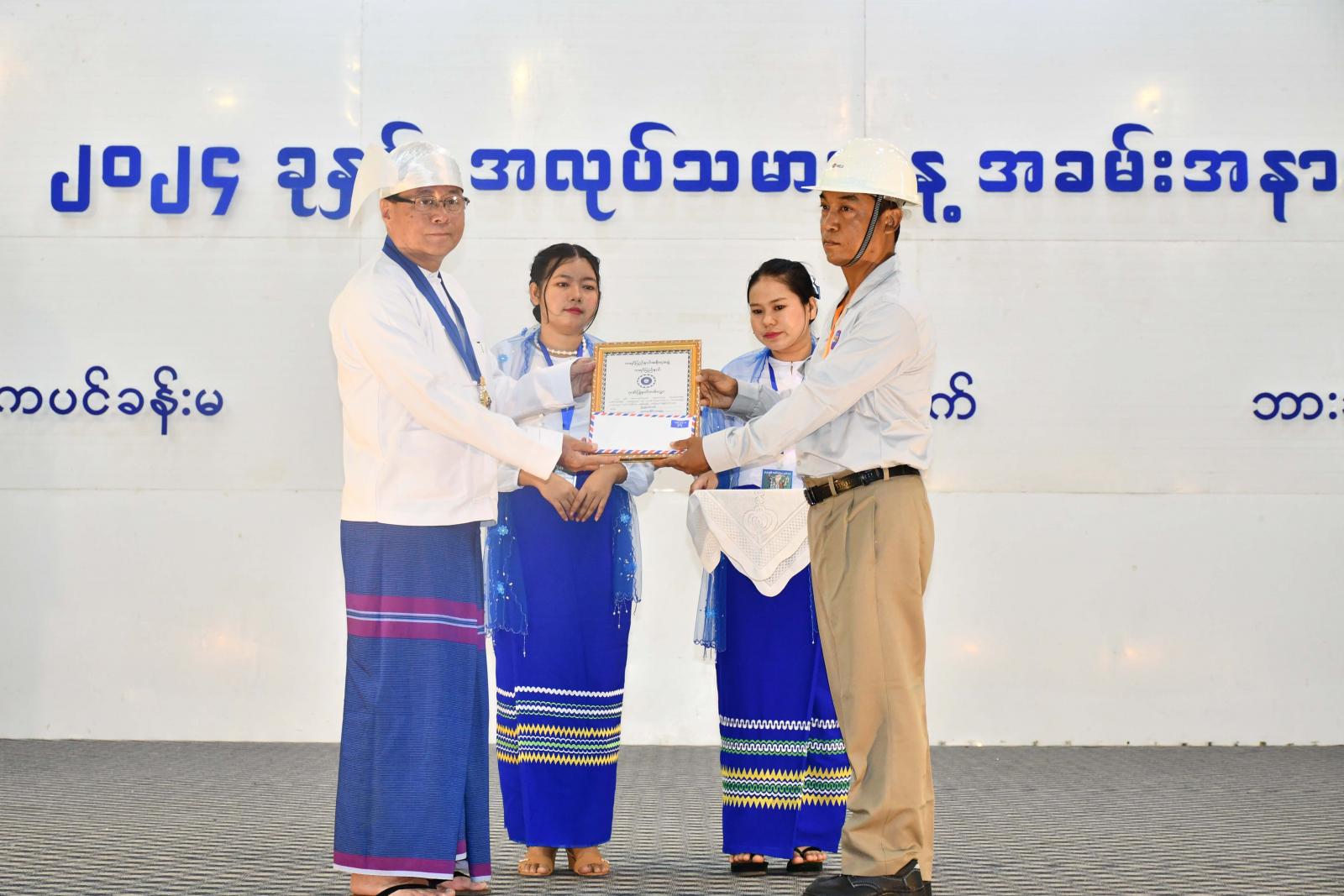 ထို့နောက် ပြည်နယ်ဝန်ကြီးချုပ်က ပြည်နယ်အတွင်းဝန်ဆောင်မှုကဏ္ဍနှင့်ထုတ်လုပ်မှုကဏ္ဍတို့တွင် ထူးချွန်ဆုရရှိကြသူများအား ဂုဏ်ပြုဆုများပေးအပ်ချီးမြှင့်ပြီး အလုပ်သမားနေ့ကို ဂုဏ်ပြုသောအားဖြင့် ရွှေကရင်အဖွဲ့၏ ဒိုးပတ်ဝိုင်း၊ ကျောင်းသား၊ ကျောင်းသူများက အလုပ်သမားနေ့သီချင်းဖြင့် တီးမှုသီဆိုကပြဖျော်ဖြေကြရာ ပြည်နယ်စီးပွားရေးရာဝန်ကြီးက ဂုဏ်ပြုဆုငွေများ ပေးအပ်ချီးမြှင့်ခဲ့သည်။