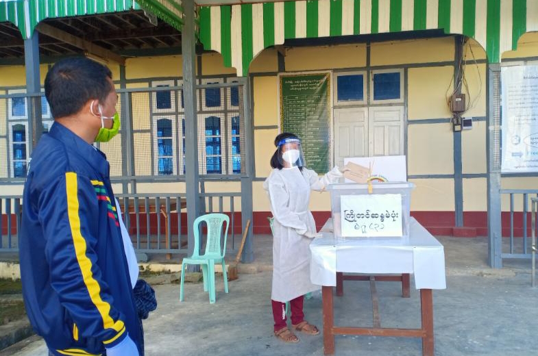 ချင်းပြည်နယ်၊ တီးတိန်မြို့၌ အသွားအလာကန့်သတ်စောင့်ကြည့်ရေး ဝင်ရောက်သူများ ကြိုတင်ဆန္ဒမဲပေးနိုင်ရန် မြို့နယ်ရွေးကောက်ပွဲကော်မရှင်အဖွဲ့ခွဲဝင်များမှ ဆောင်ရွက်ပေးလျက်ရှိရာ ယမန်နေ့က အသွားအလာကန့်သတ်စောင့်ကြည့်ရေး ဝင်ရောက်သူ (၄)ဦးအား ကြိုတင်ဆန္ဒမဲပေးခြင်းများဆောင်ရွက်ပေးသည်။