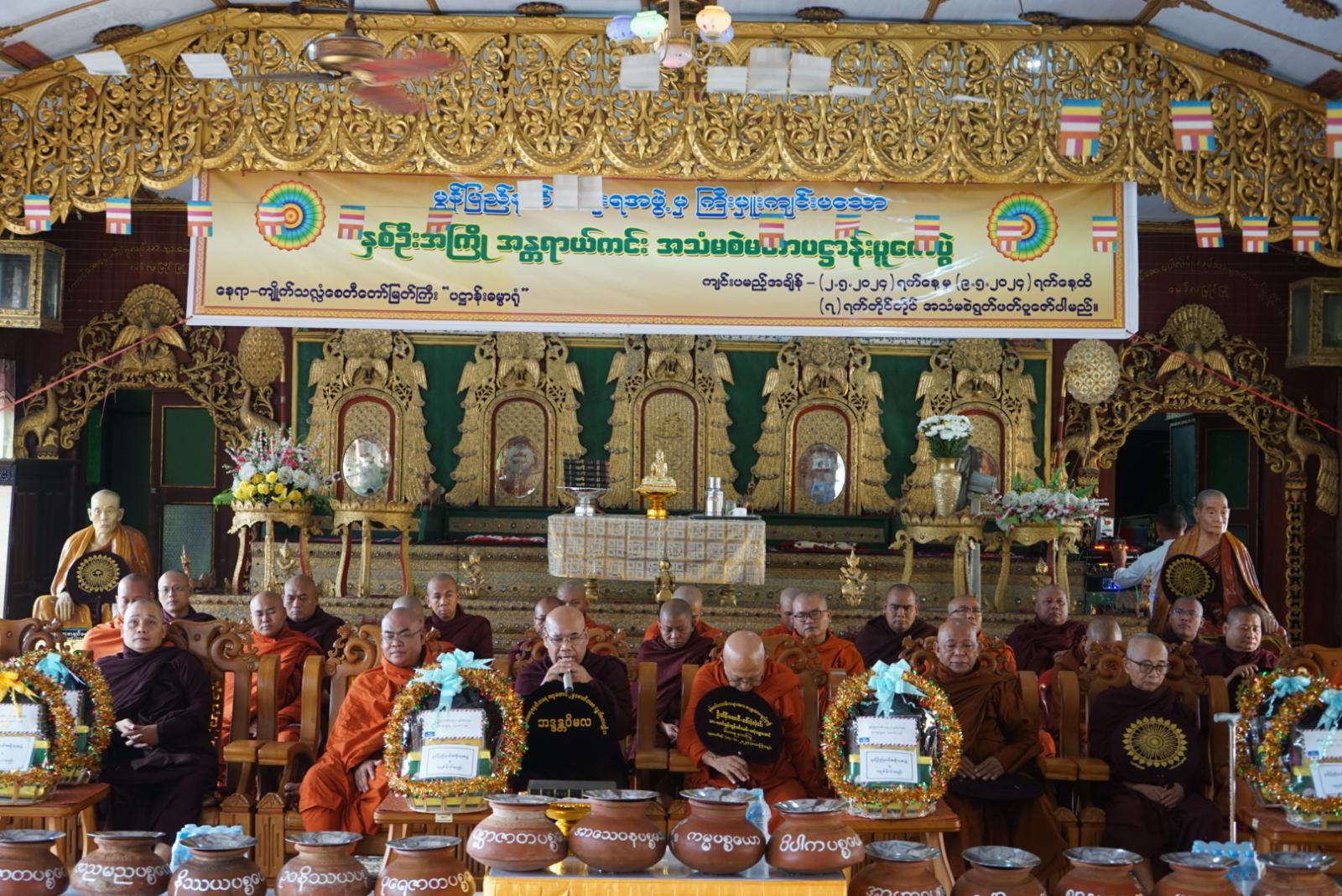ရှေးဦးစွာ အခမ်းအနားကို “နမောတဿ” သုံးကြိမ်ရွတ်ဆိုဘုရားကန်တော့၍ ဖွင့်လှစ်ပြီး မော်လမြိုင်မြို့၊ အောက်ကျင်းရပ်ကွက်၊ သာသနာ့မာရ်အောင်ဝဲပျံစာသင်တိုက်ကျောင်း ဦးစီးပဓာနနယကဆရာတော် ဘဒ္ဒန္တနန္ဒဝံသ(မဟာဂန္ထဝါစကပဏ္ဍိတ)ထံမှ ဧည့်ပရိတ်သတ်များက ငါးပါးသီလ ခံယူဆောက်တည်ပြီး သံဃာတော်အရှင်သူမြတ်များ ရွတ်ပွားသရဇ္ဈာယ်တော်မူသော မေတ္တာသုတ်ပရိတ်တရားတော်များ နာယူကြည်ညိုခဲ့ကြသည်။
