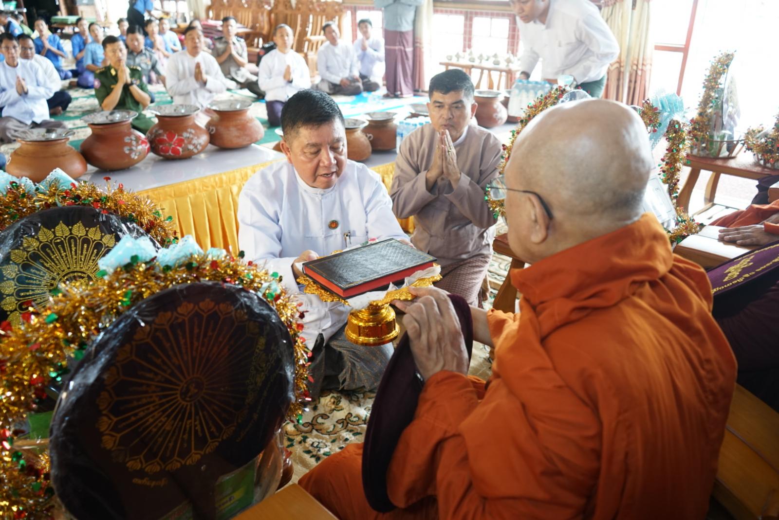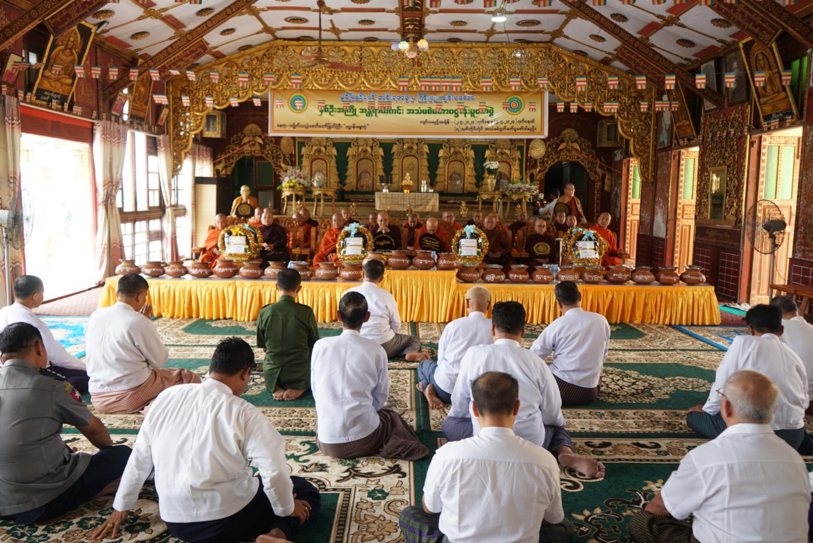 မွန်ပြည်နယ်အစိုးရအဖွဲ့မှ ကြီးမှူးကျင်းပသော နှစ်ဦးအသံမစဲမဟာပဋ္ဌာန်းပူဇော်ပွဲအခမ်းအနားကို ယမန်နေ့နံနက်ပိုင်းက မော်လမြိုင်မြို့၊ လှိုင်ရပ်ကွက်၊ ကျိုက်သလ္လံစေတီတော်ရင်ပြင် ပဋ္ဌာန်းဓမ္မာရုံ၌ ကျင်းပပြုလုပ်ရာ ဆရာတော်၊ သံဃာတော် အရှင်သူမြတ်များ၊ မွန်ပြည်နယ်ဝန်ကြီးချုပ် ဦးအောင်ကြည်သိန်း၊ ပြည်နယ်အစိုးရအဖွဲ့ဝင်ဝန်ကြီးများ၊ ဌာနဆိုင်ရာအကြီးအကဲများ၊ အလှူရှင်ဧည့်ပရိသတ်များ၊ ရပ်မိရပ်ဖများ တက်ရောက်ခဲ့သည်။